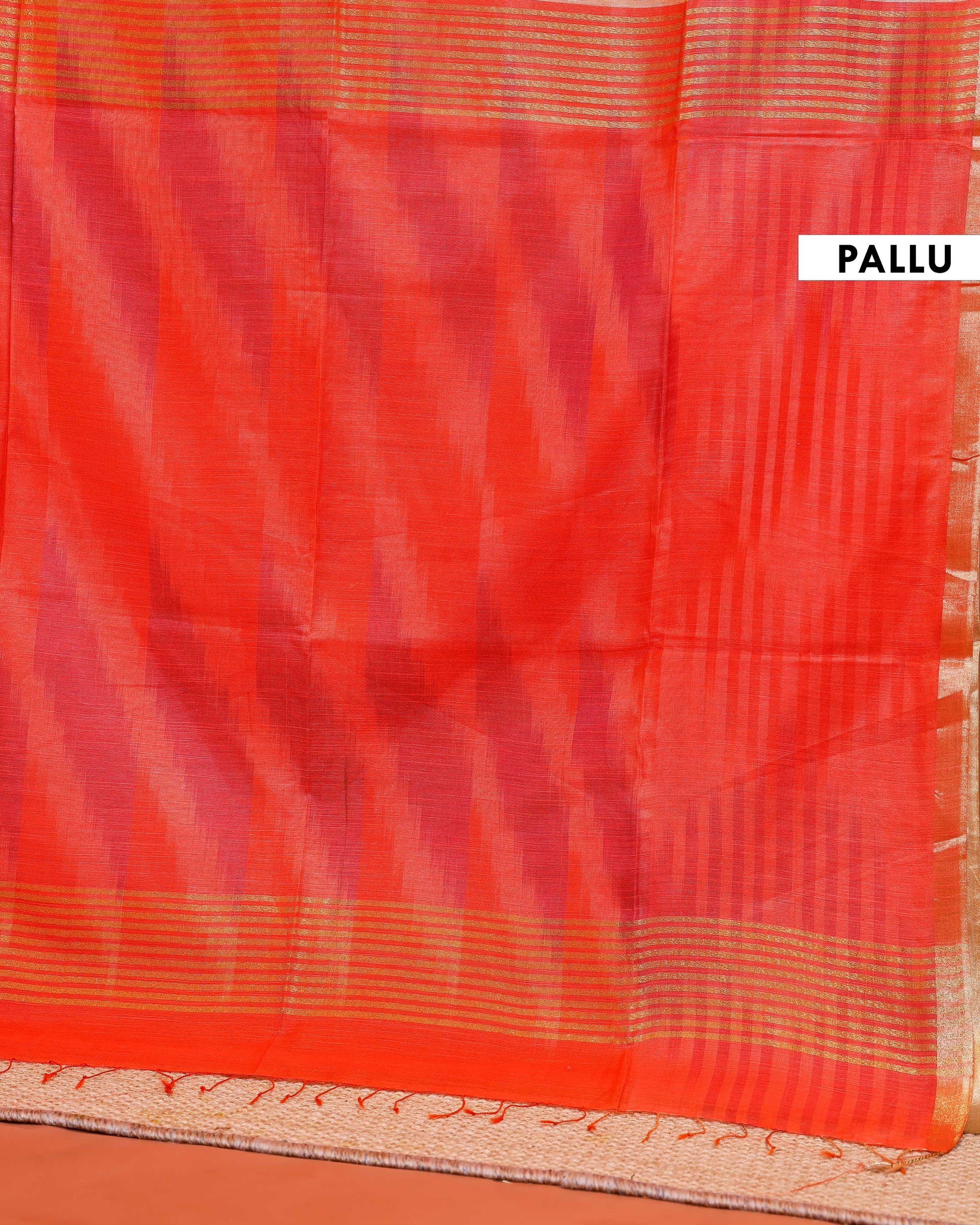 - The handloom weave features a delicate zari border, adding a touch of traditional charm to this graceful drape