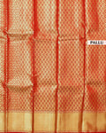 Handwoven with pure silk and golden zari, it embodies timeless elegance and traditional craftsmanship, perfect for bridal wear and special occasions.