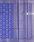Floral Jacquard Tissue Saree With Contrast Zari Design Border & Floral Zari Design Pallu - Blue