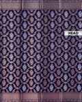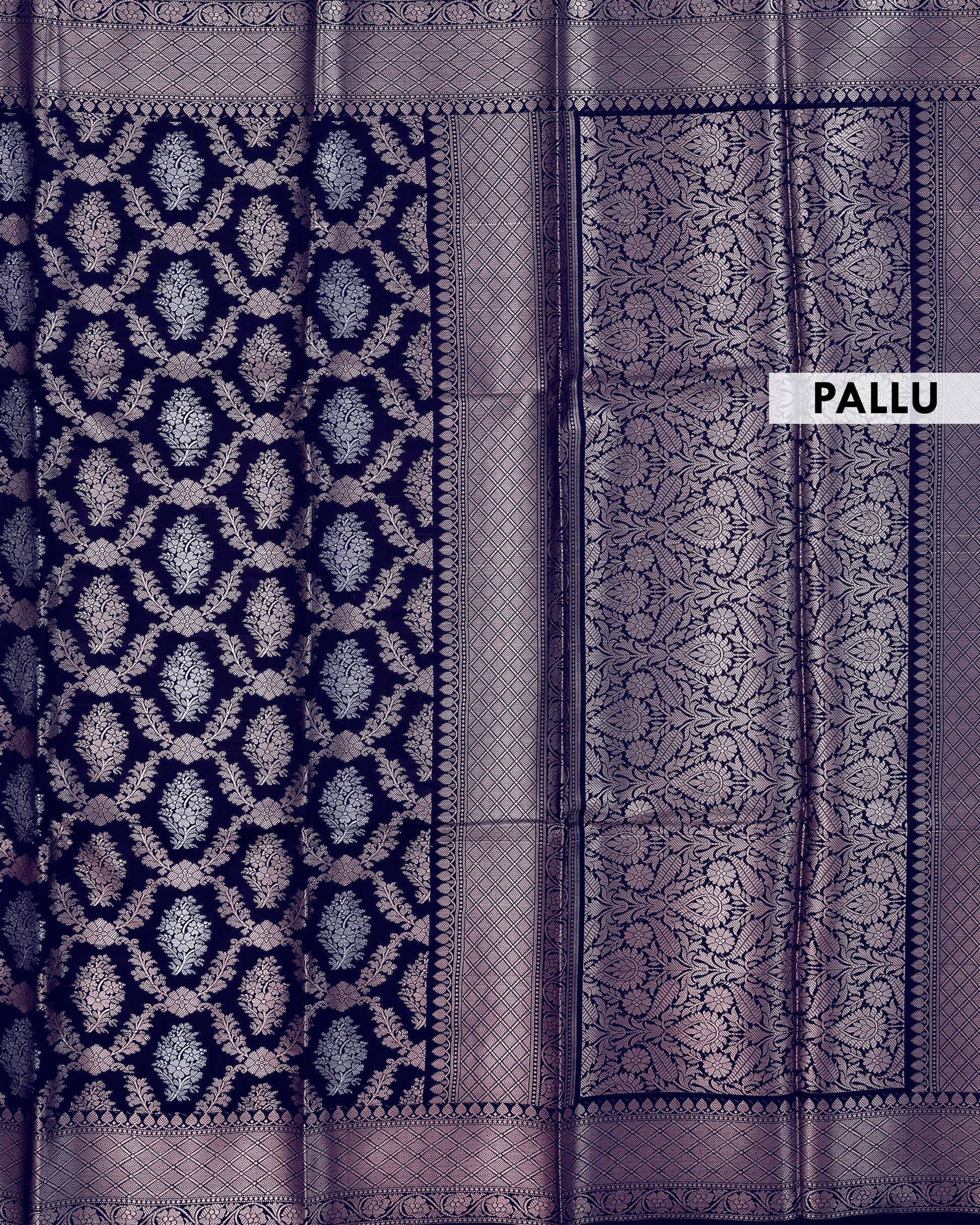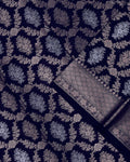Floral Jacquard Tissue Saree With Contrast Zari Design Border & Floral Zari Design Pallu - Navy Blue