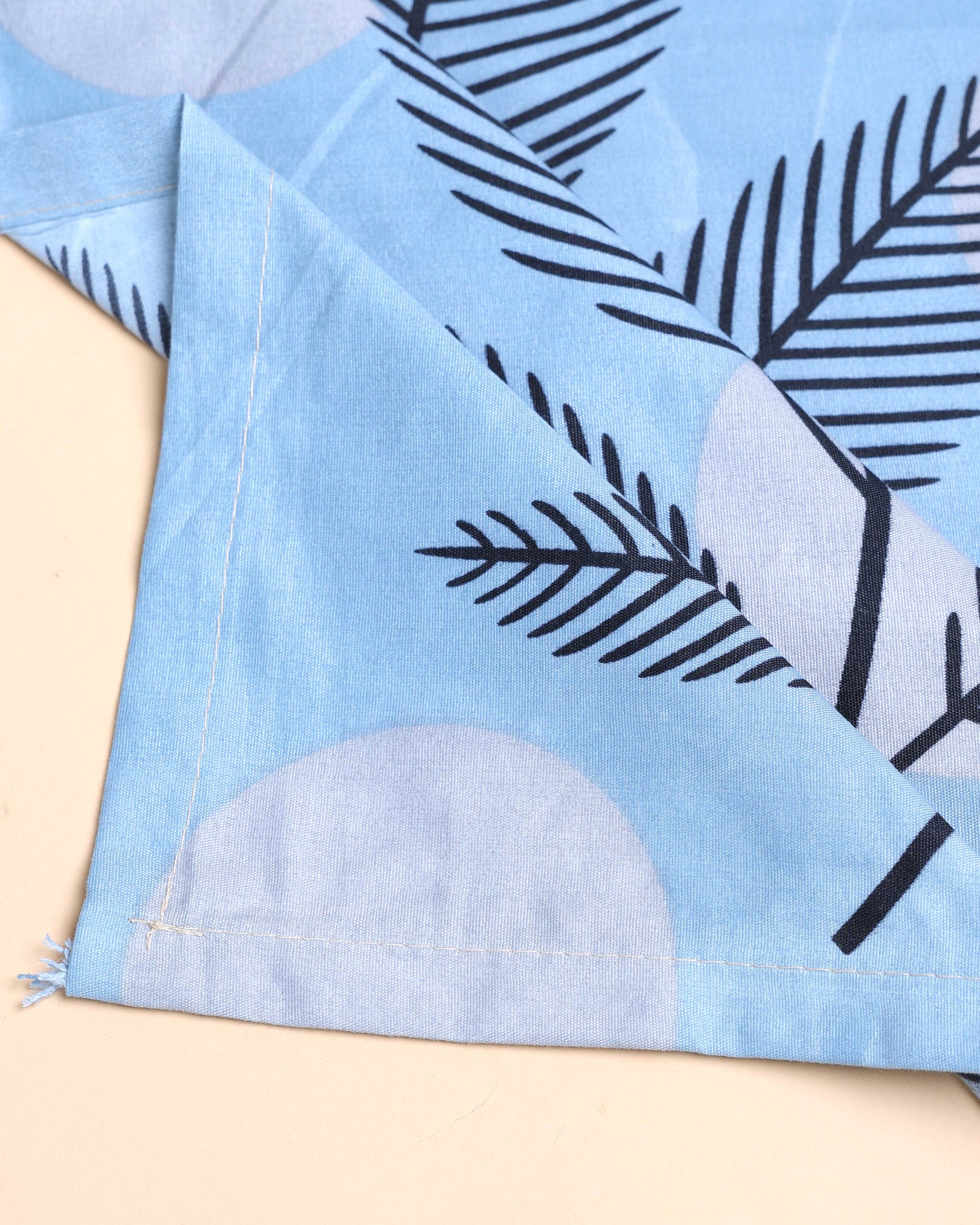 Modern Leaf Motif Design Bed Cover with Matching Pillow Cover Set - Blue