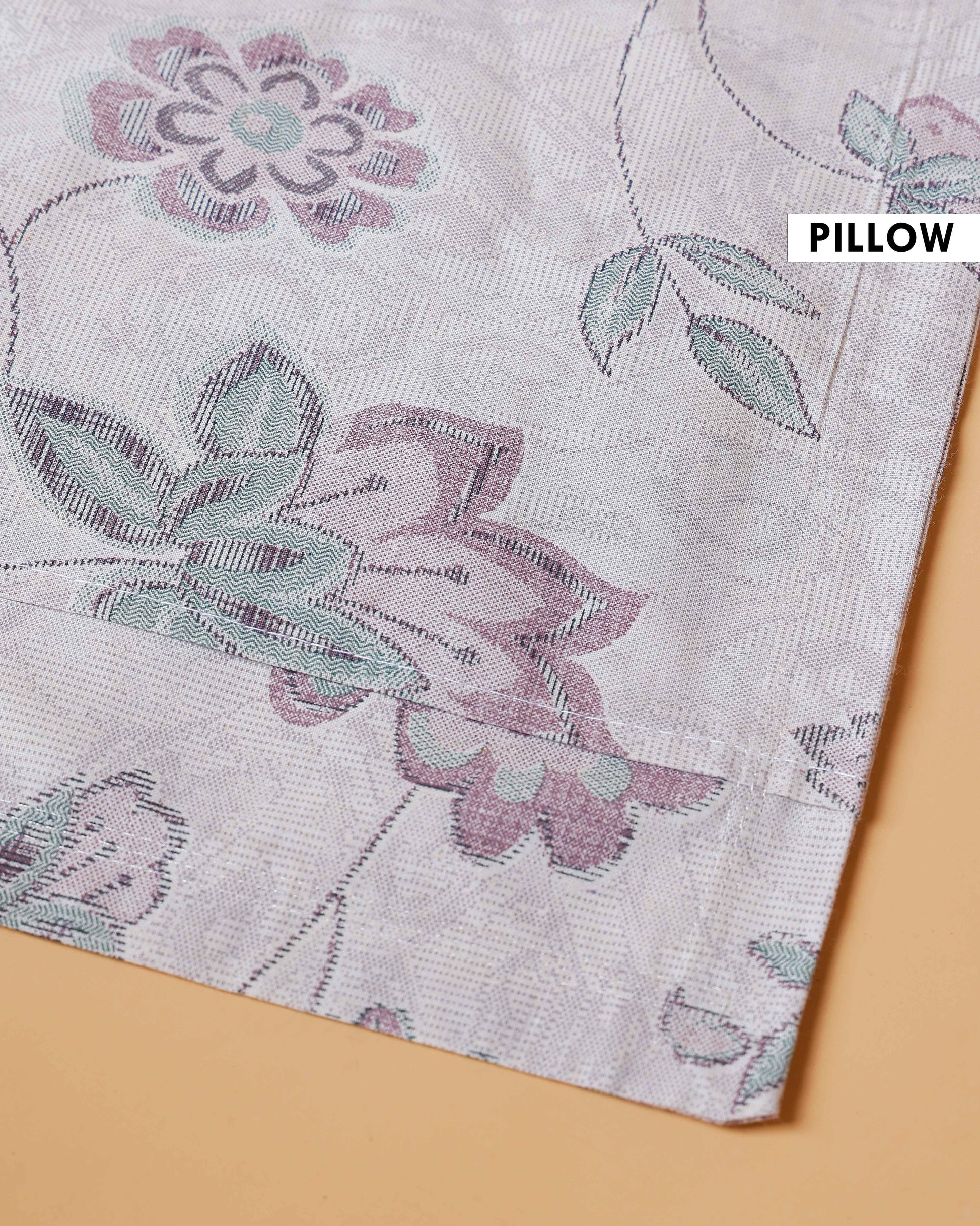 Floral Printed Cotton Queen Size Bed Cover with Pillow Cover - Pastel Grey