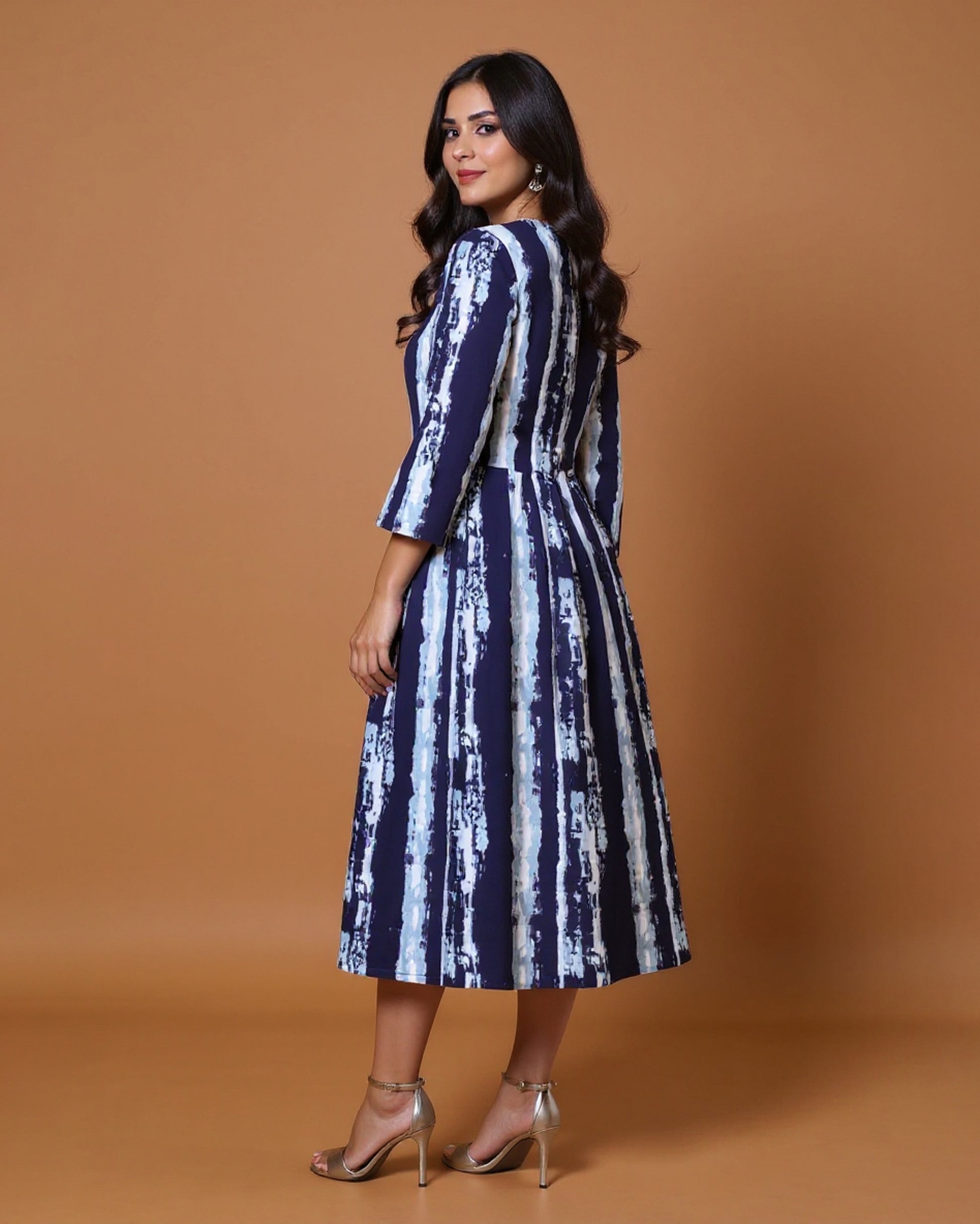 Maternity Wear - Elegant Blue Abstract Stripe Button-Down Women's Feeding Top