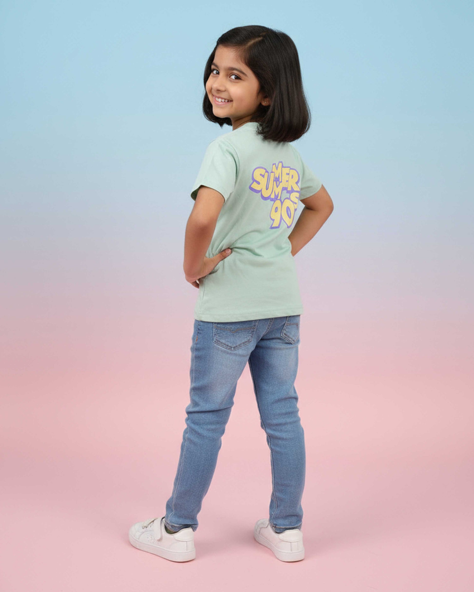 Girls Graphic Print Crew Neck T-Shirt - Green