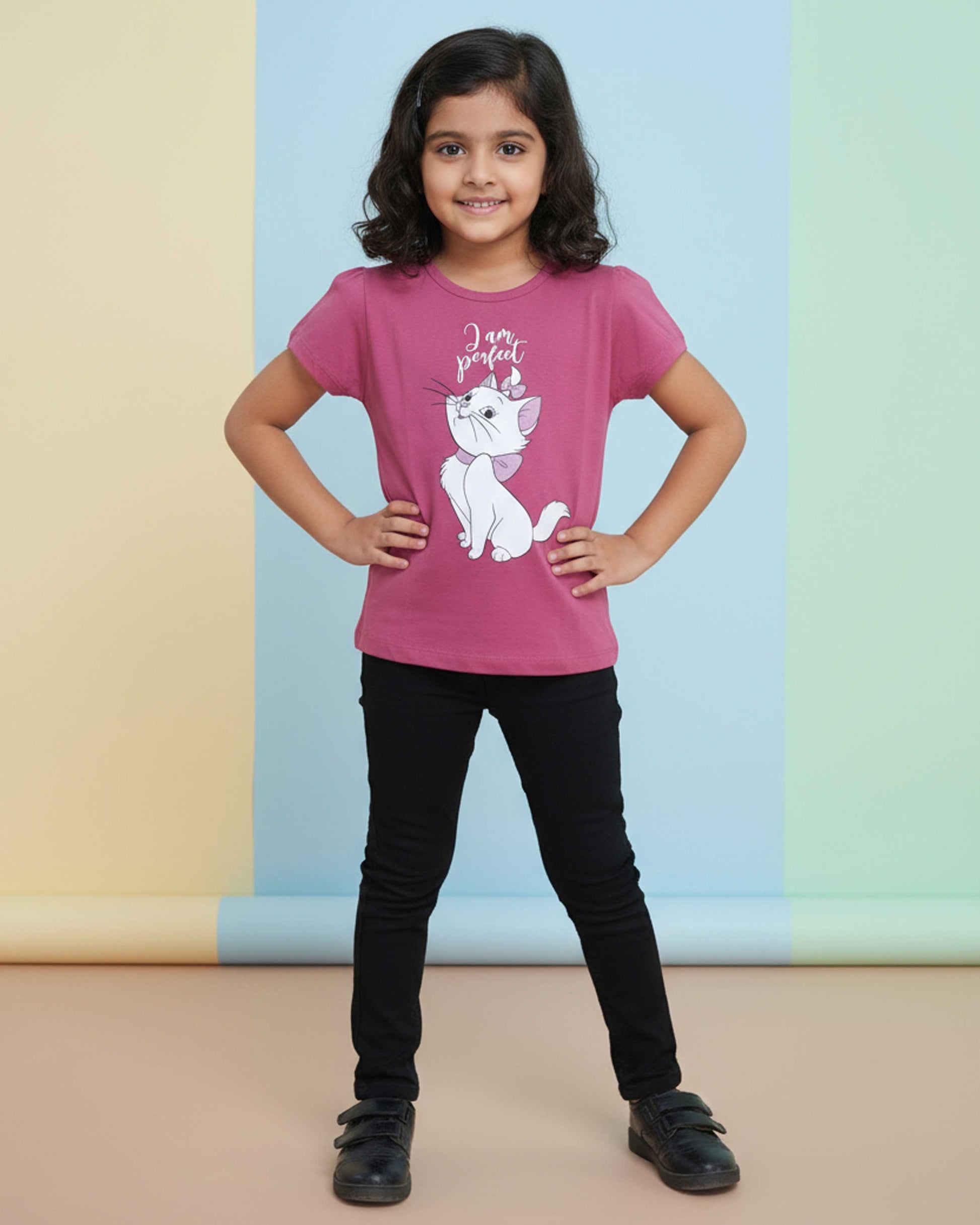 Girls Graphic Print Crew Neck T-Shirt -Onion Pink