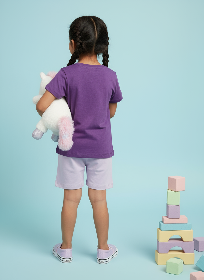 Girls Graphic Print Crew Neck T-Shirt - Purple