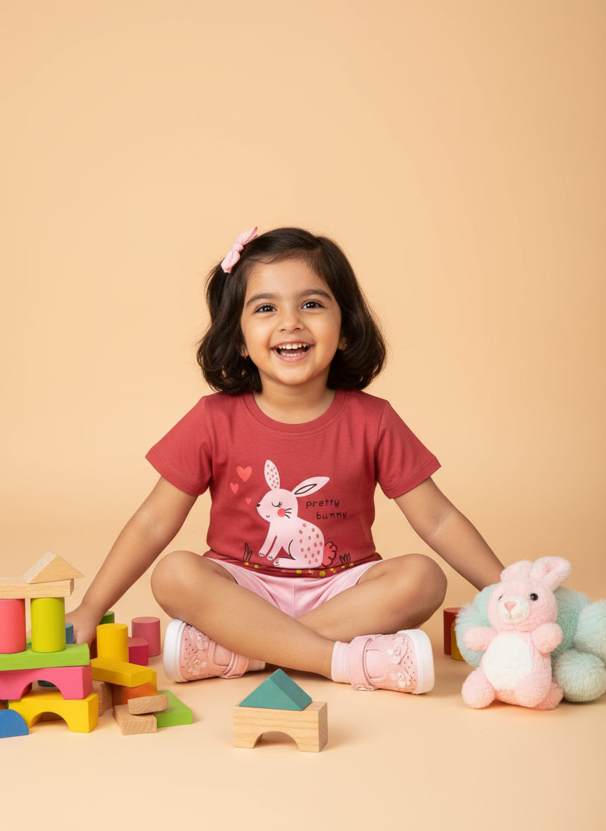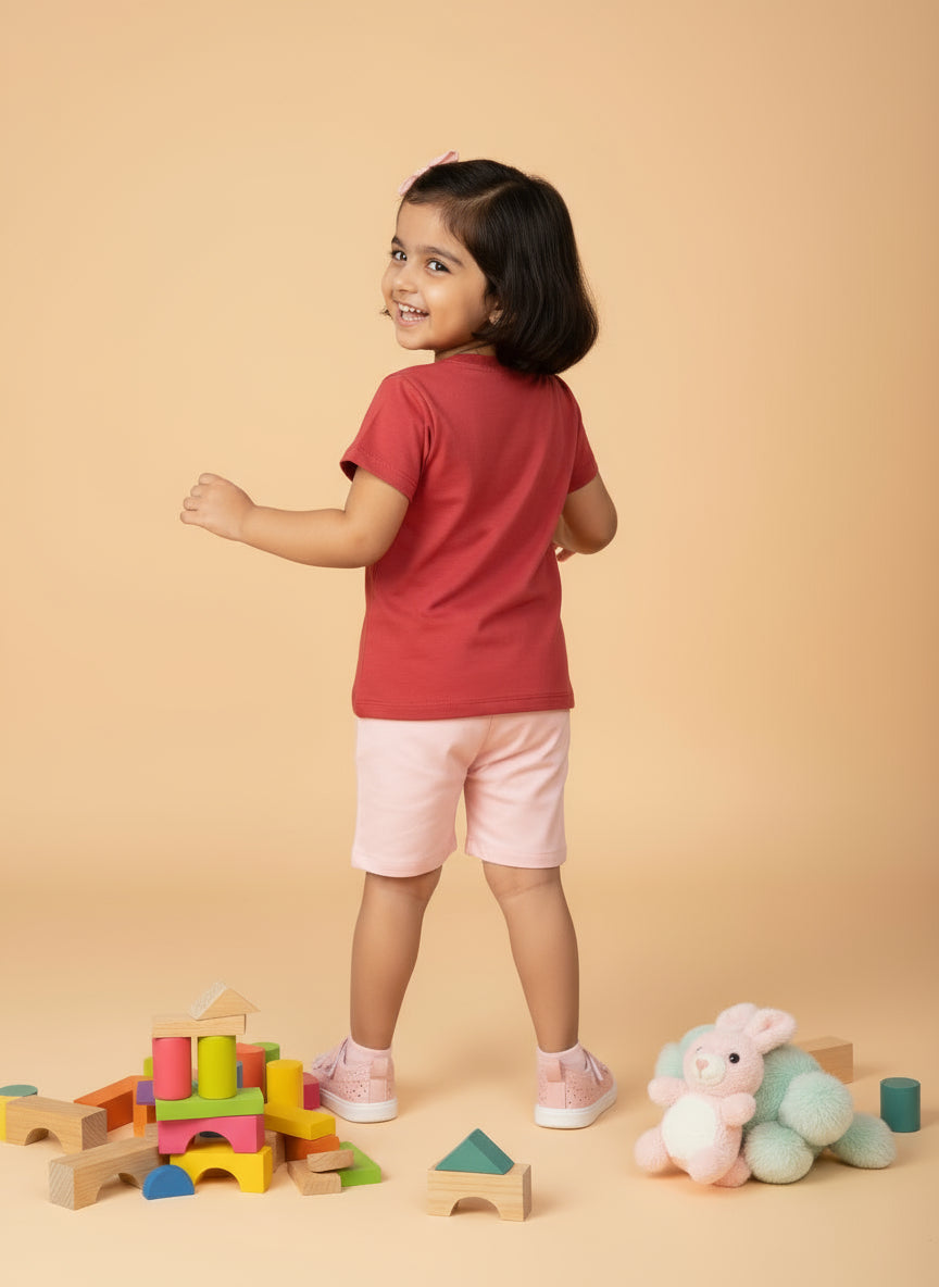 Girls' Graphic Print Crew Neck T-Shirt - Red