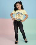 Girls Graphic Print Crew Neck T-Shirt - Yellow