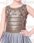 Girls Kids Embellished Sleeveless Choli Dress with Zari Work - Grey