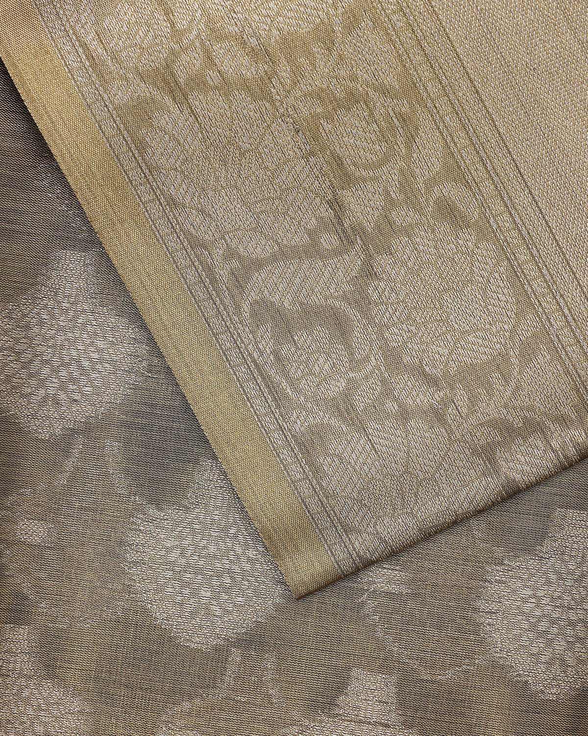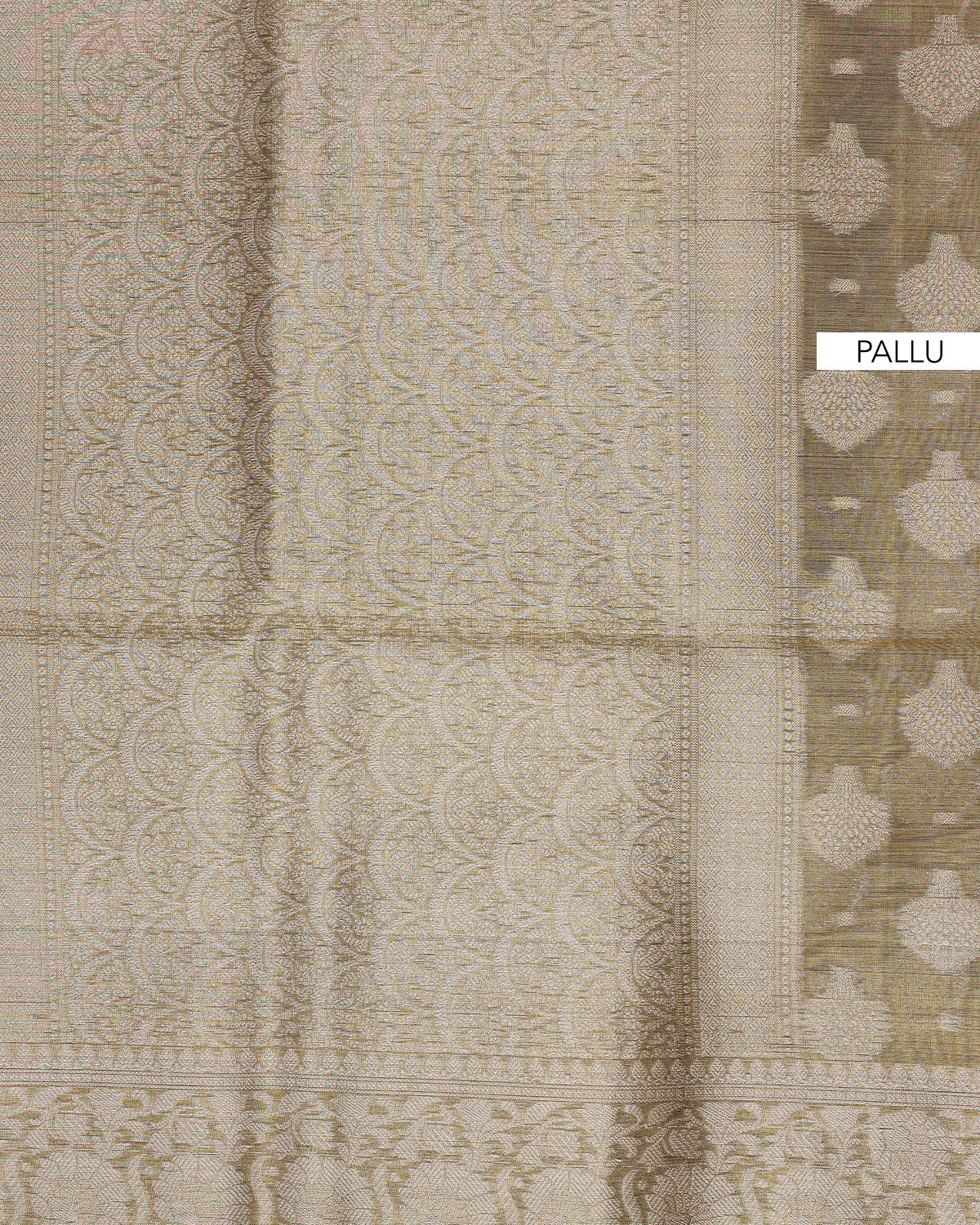 - Elevate your style with this elegant tissue silk saree, a subtle gold hue and intricate woven patterns that exude timeless grace