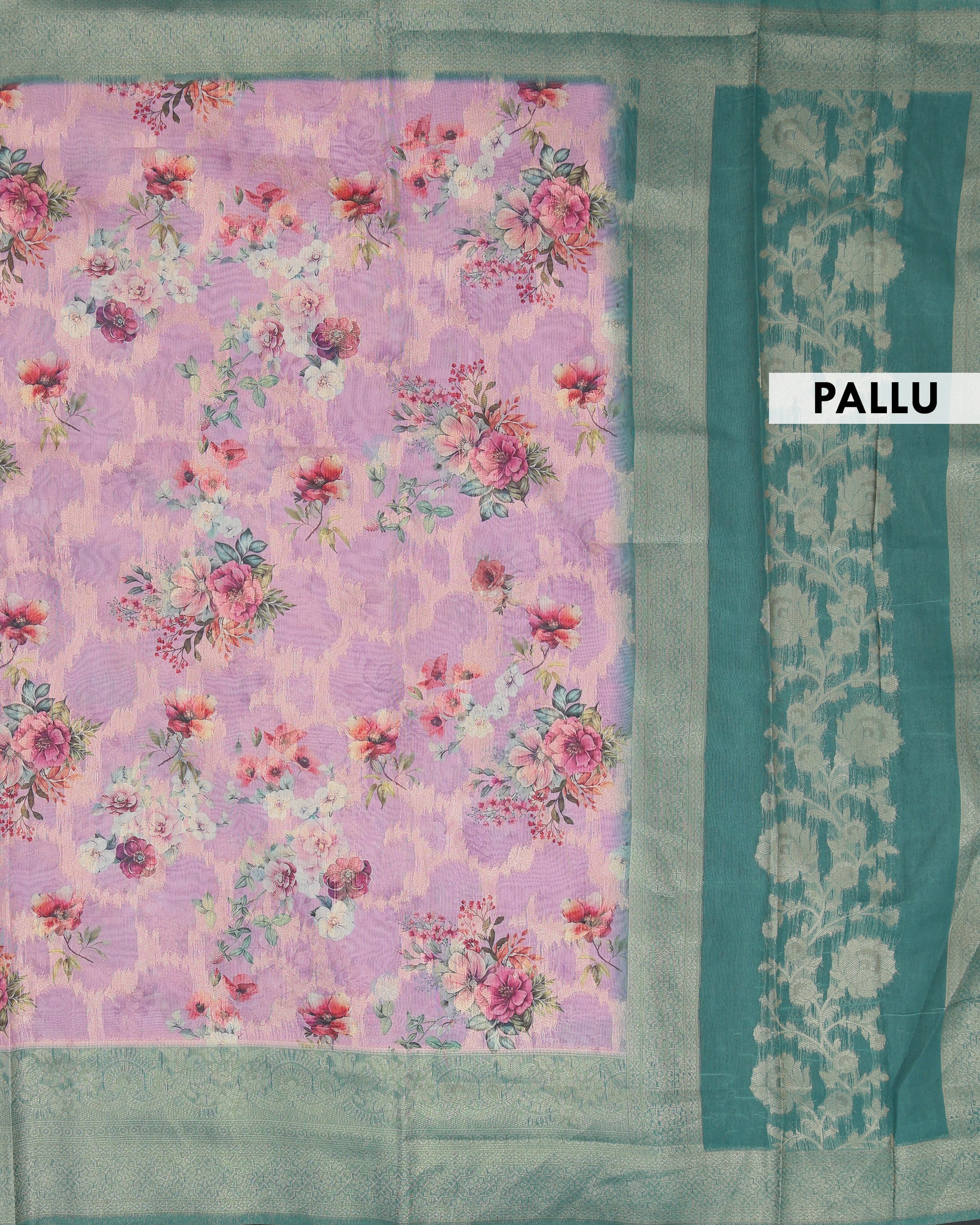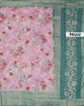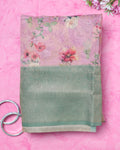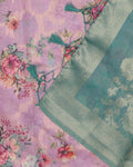 Floral Fancy Silk Saree with Contrast Zari Border - Pink