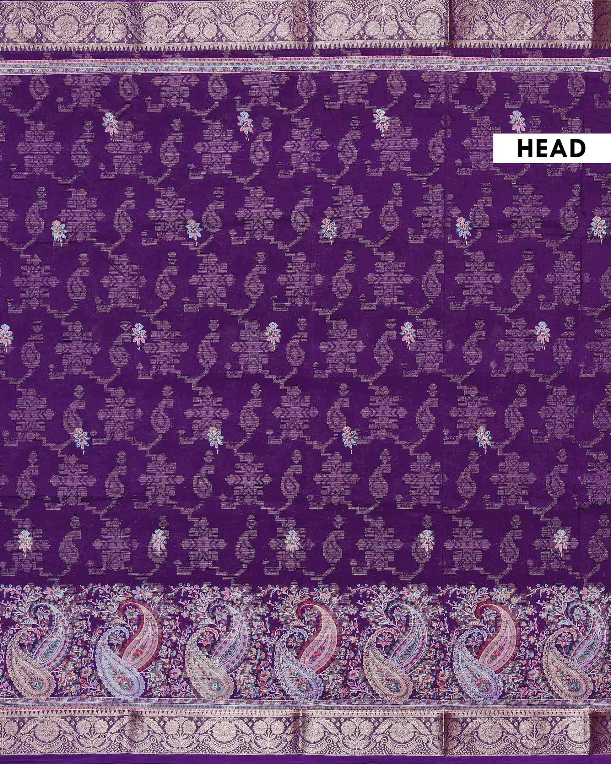 Graceful Dola Silk Saree with Paisley & Floral Motif Woven Butta Design and Traditional Zari Border - Purple
