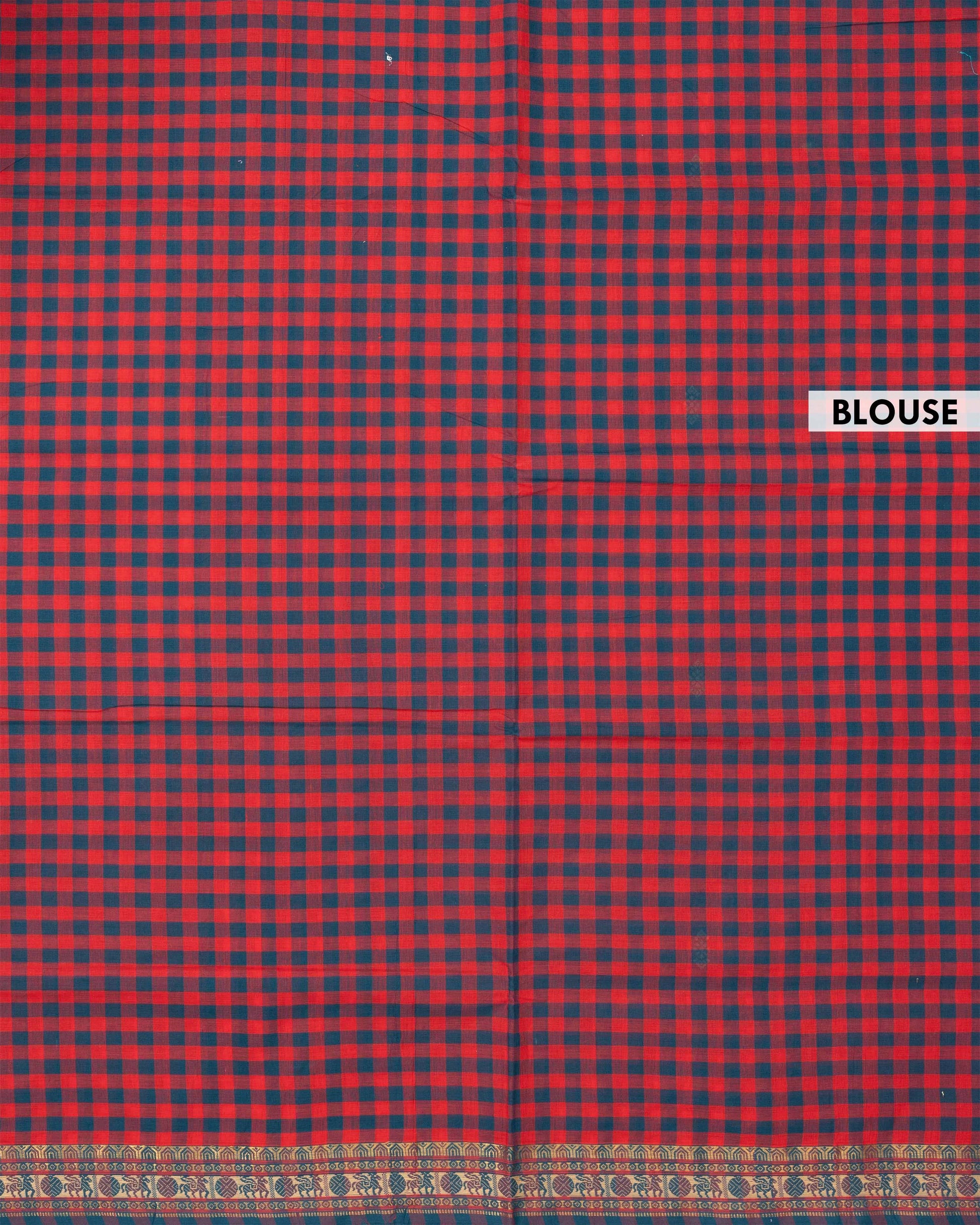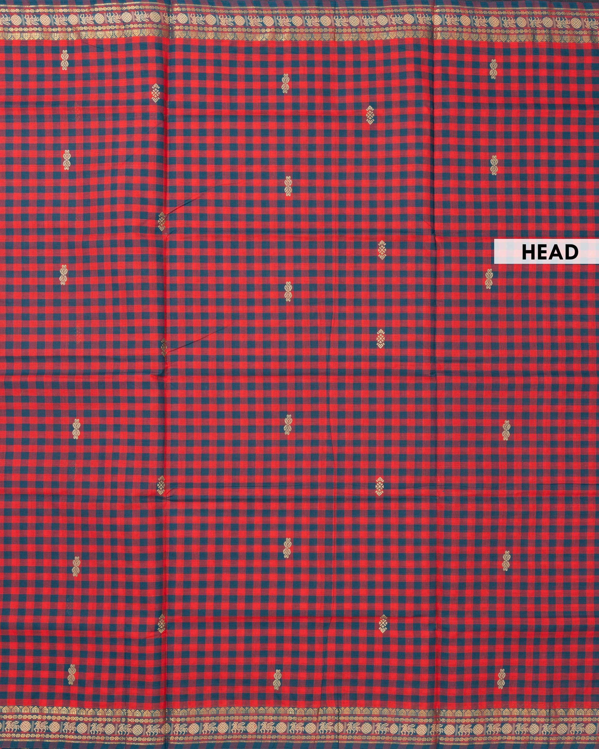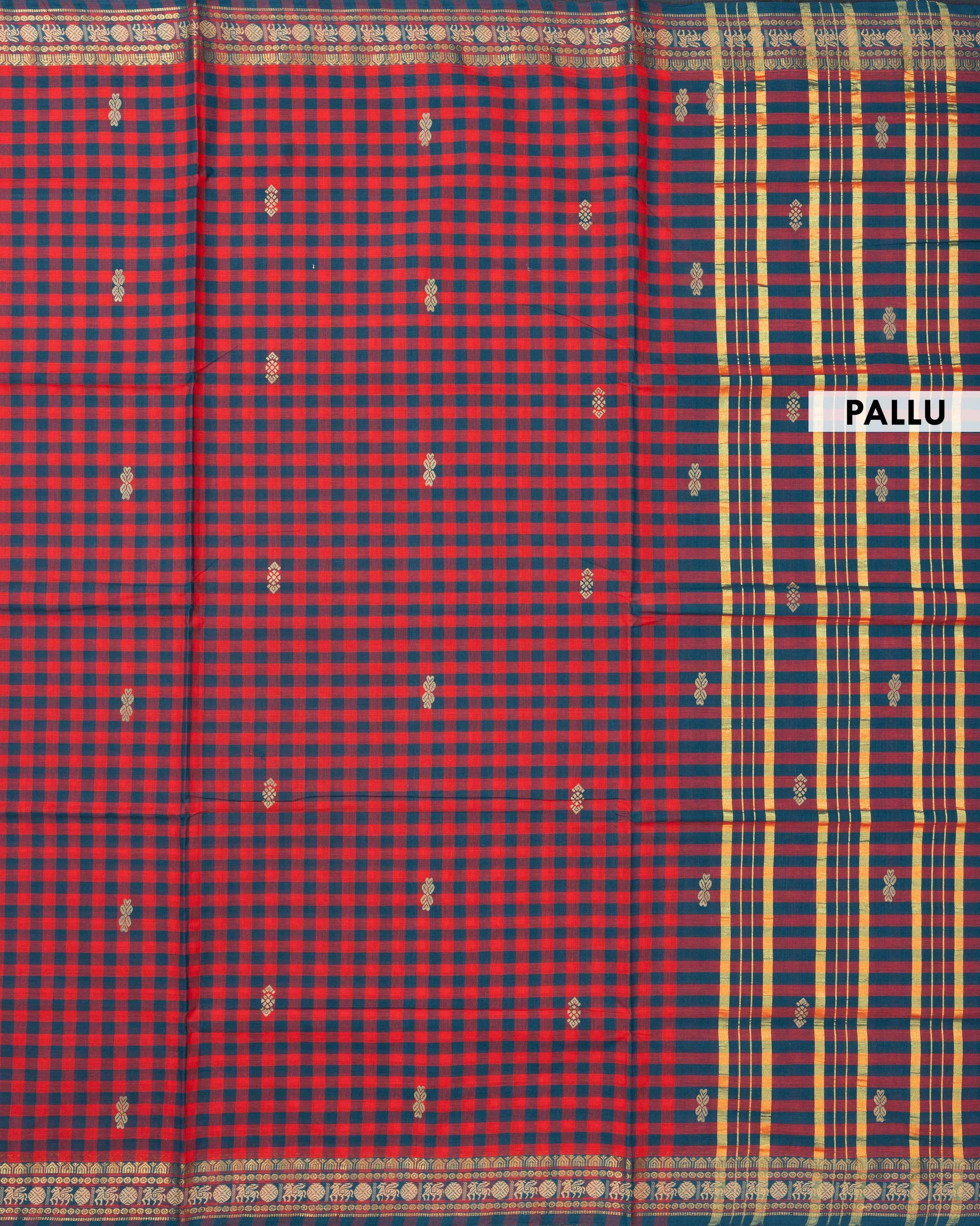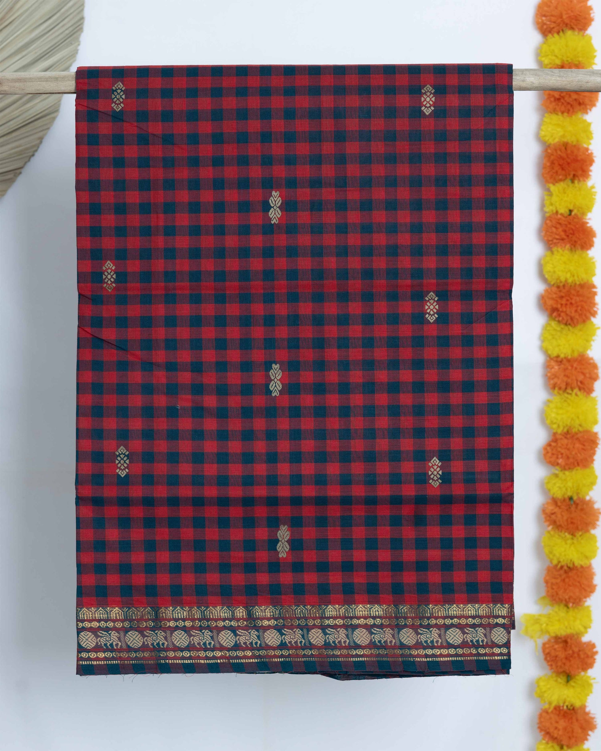 Checked Venkatagiri Cotton Saree with Zari Butta - Multi
