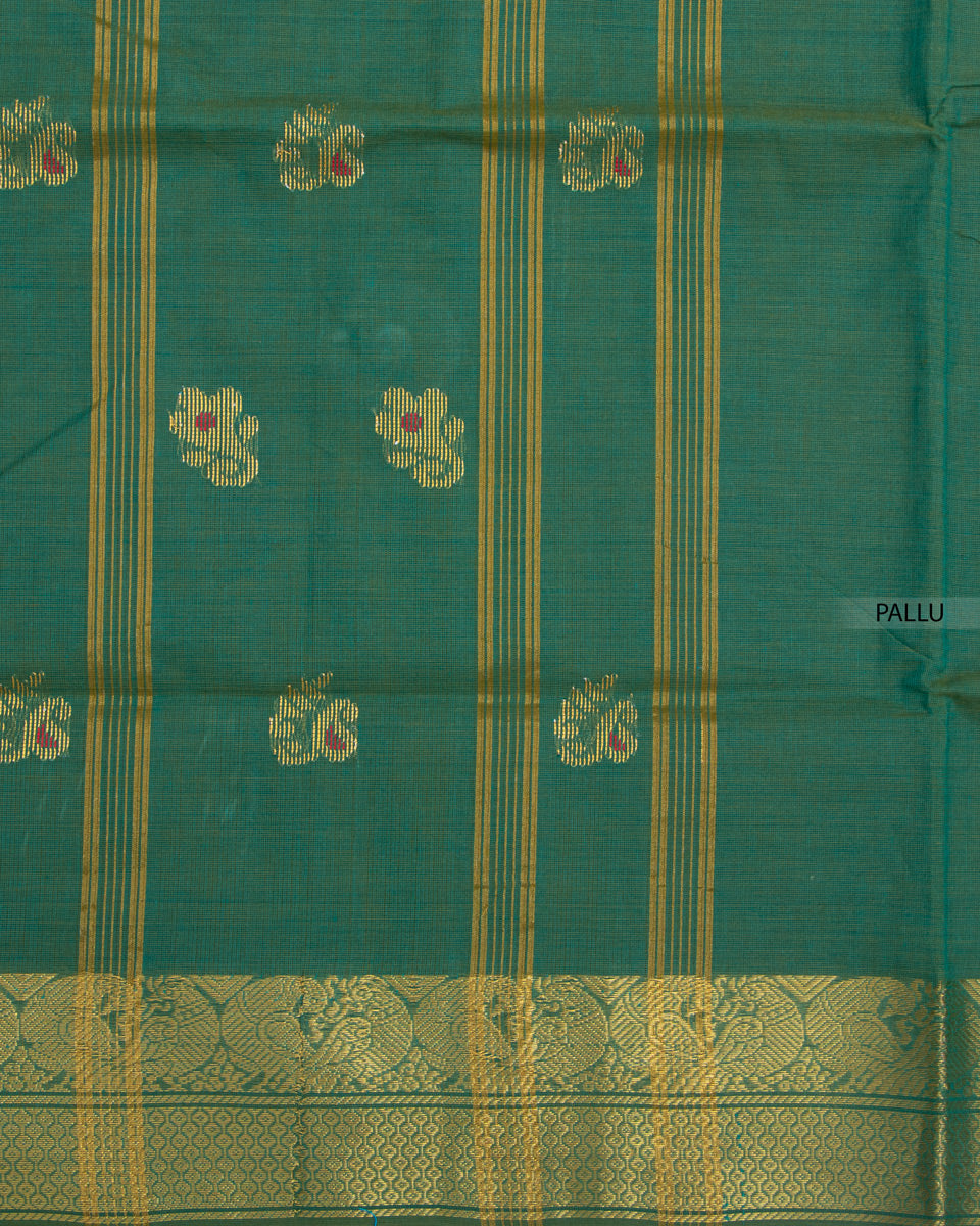 Handloom Cotton Saree with Checked Weave and Zari Border - Green