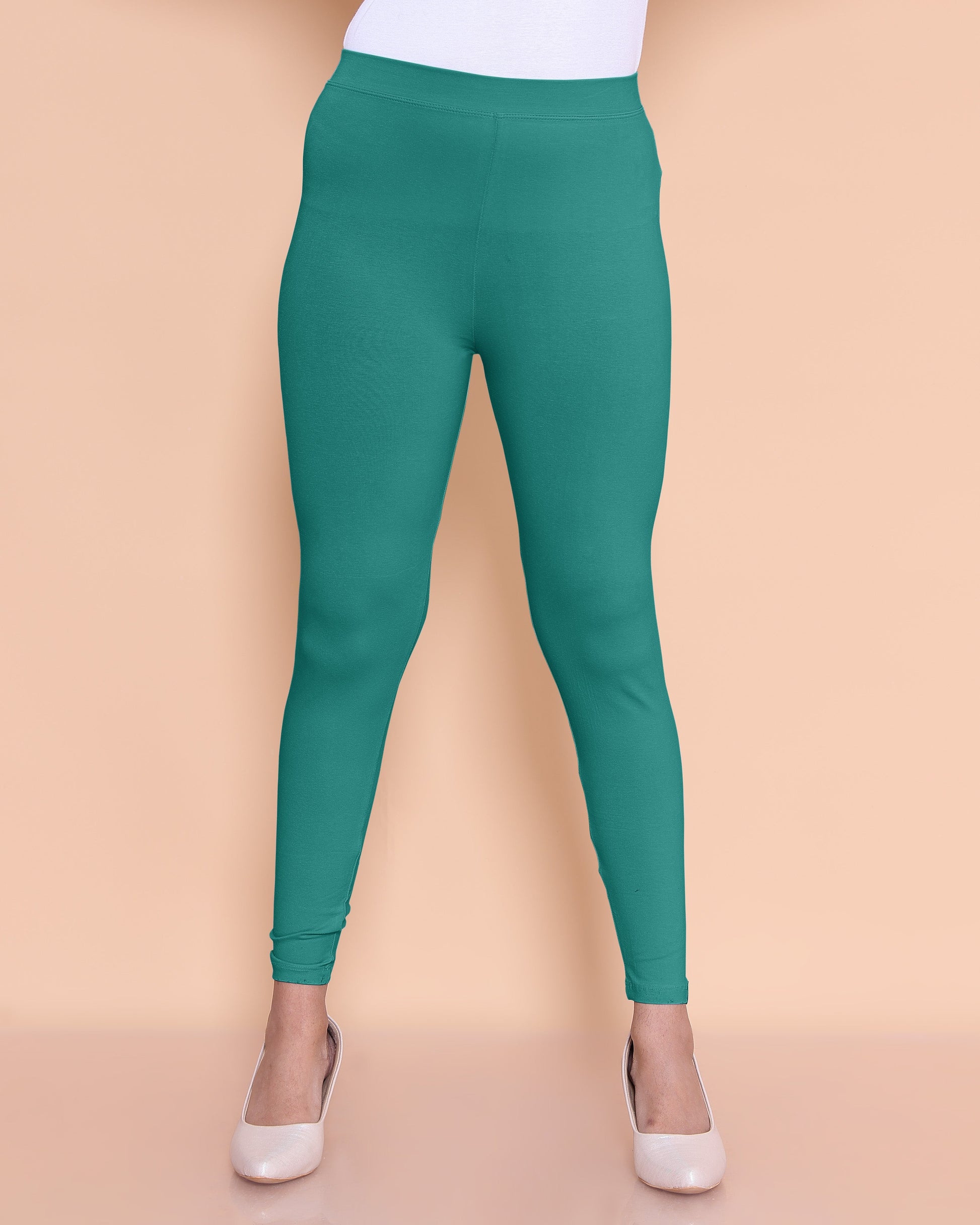 - Elevate your style with these comfortable peacock green ankle length women's leggings.