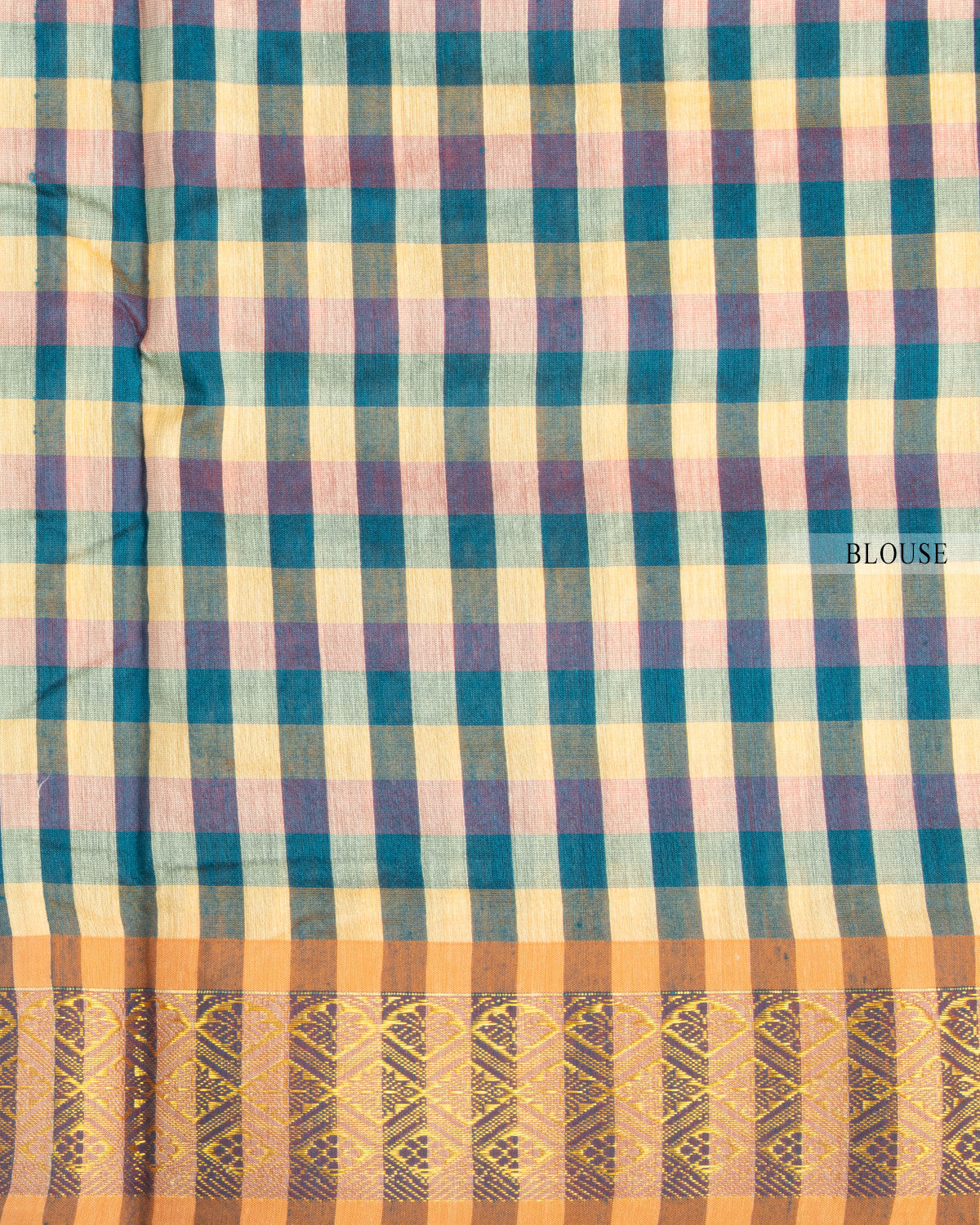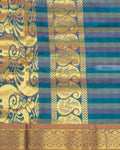 - Elevate your traditional wardrobe with this stunning Kalyani Cotton Saree featuring a vibrant red body and a rich, contrasting green border with intricate zari work.