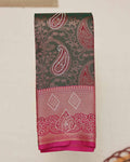 - Elevate your wardrobe with this stunning premium silk saree, intricate stone embroidery and traditional paisley motifs on a rich green body.
