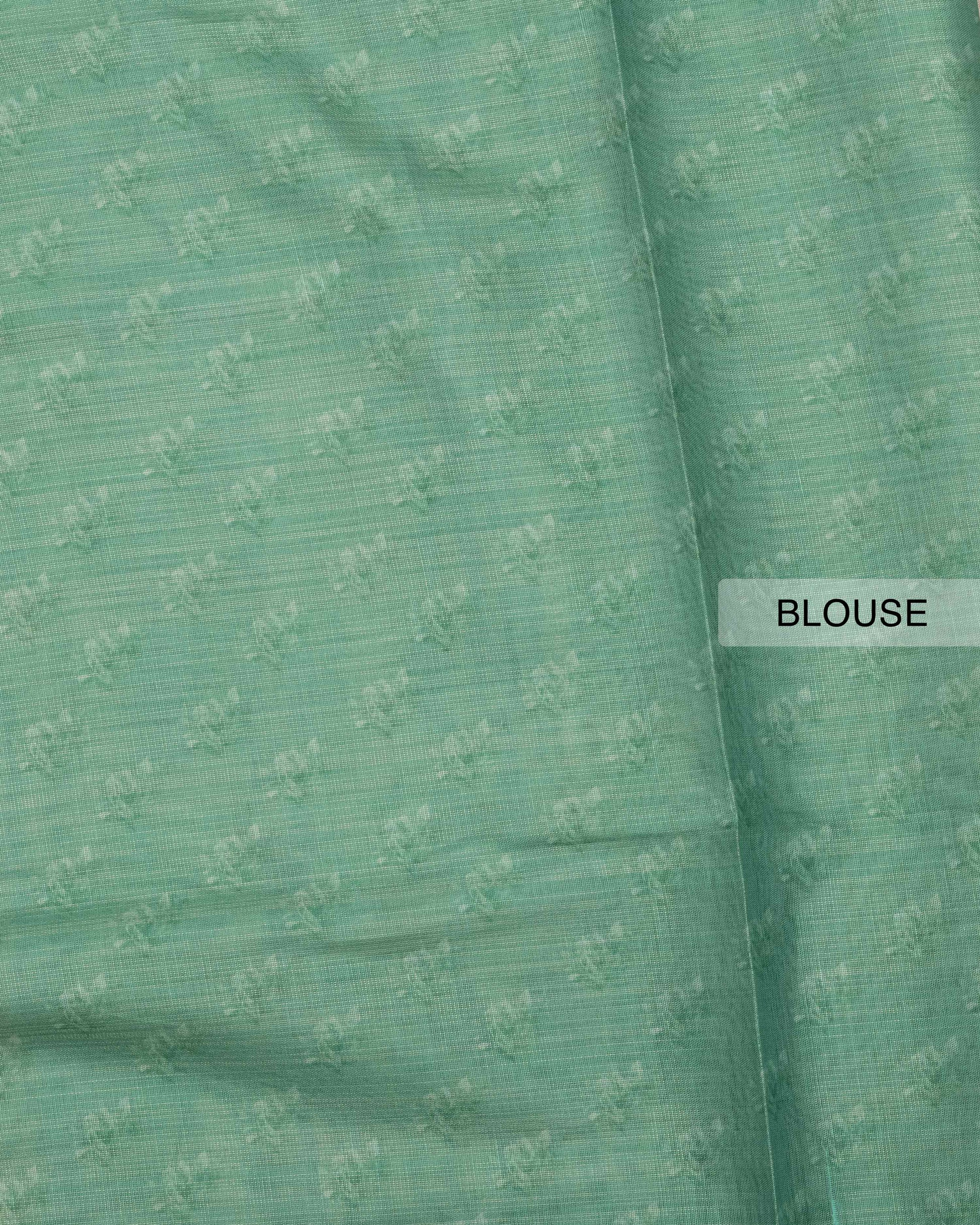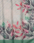 - Elevate your style with this elegant green tissue saree, a delicate floral print and a shimmering finish.