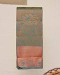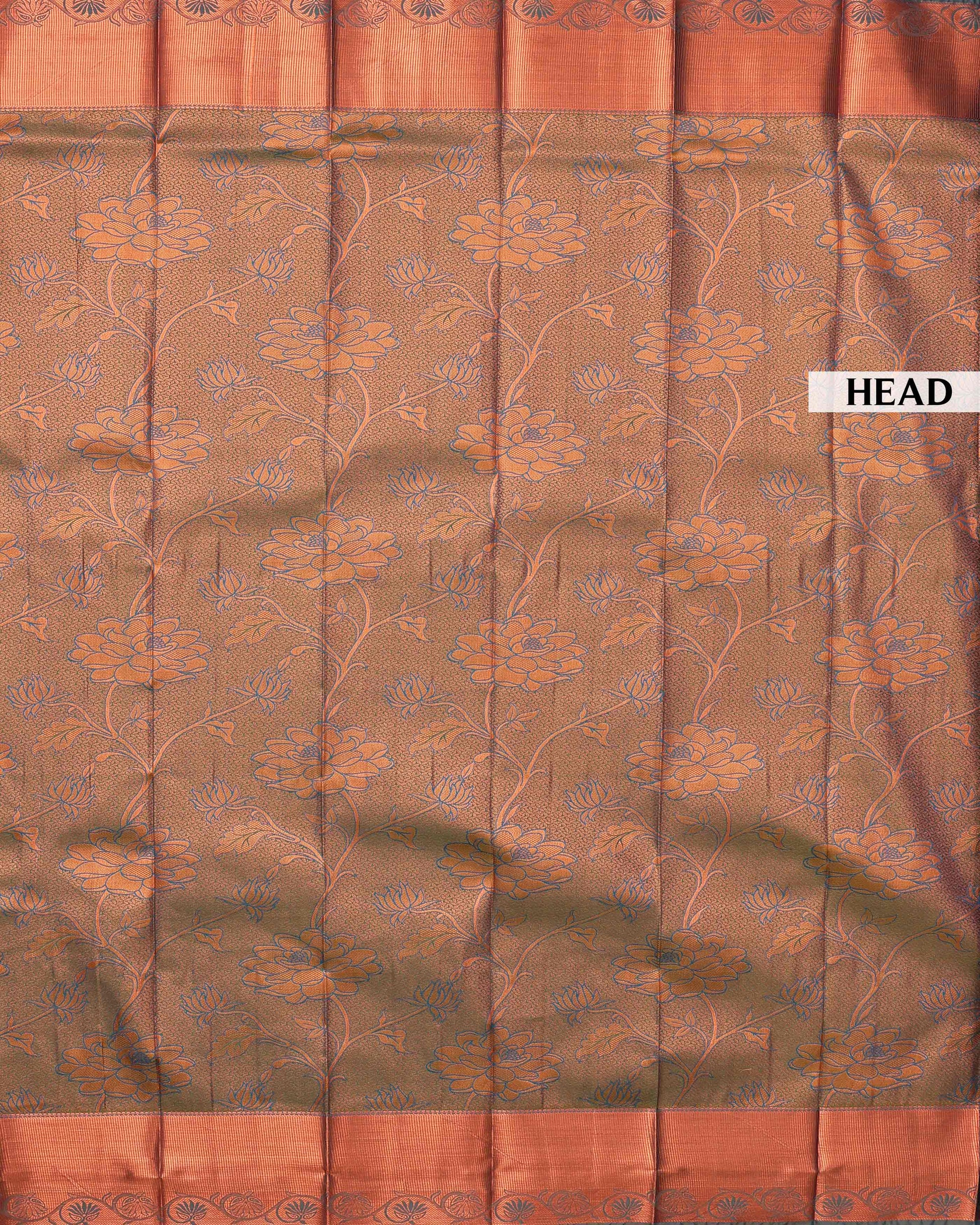 - Elevate your wardrobe with this exquisite dual-tone Premium silk saree, elegant floral motifs and a rich zari border.