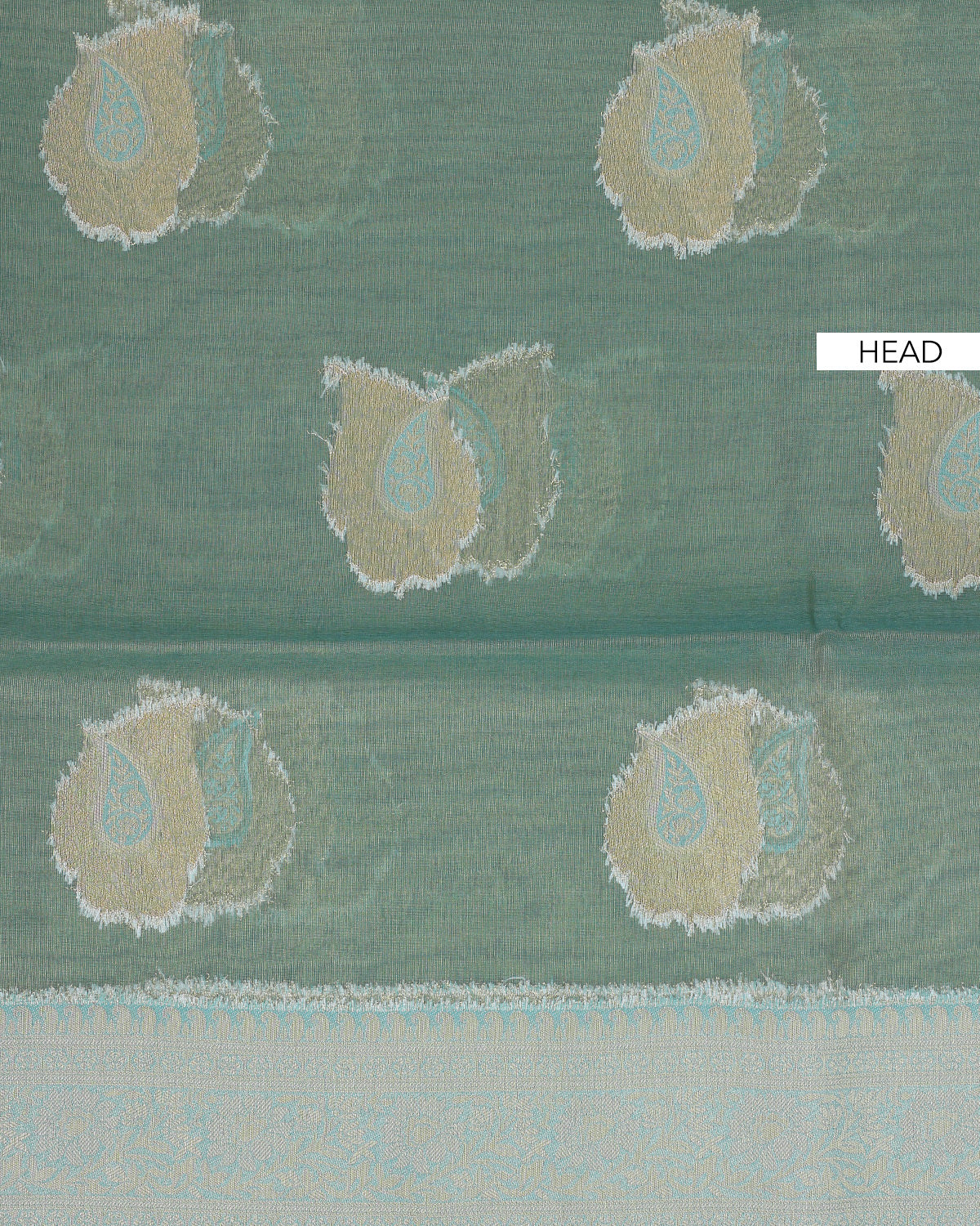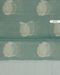 - This elegant tissue saree a refreshing mint green body adorned with subtle zari motifs.
