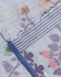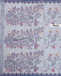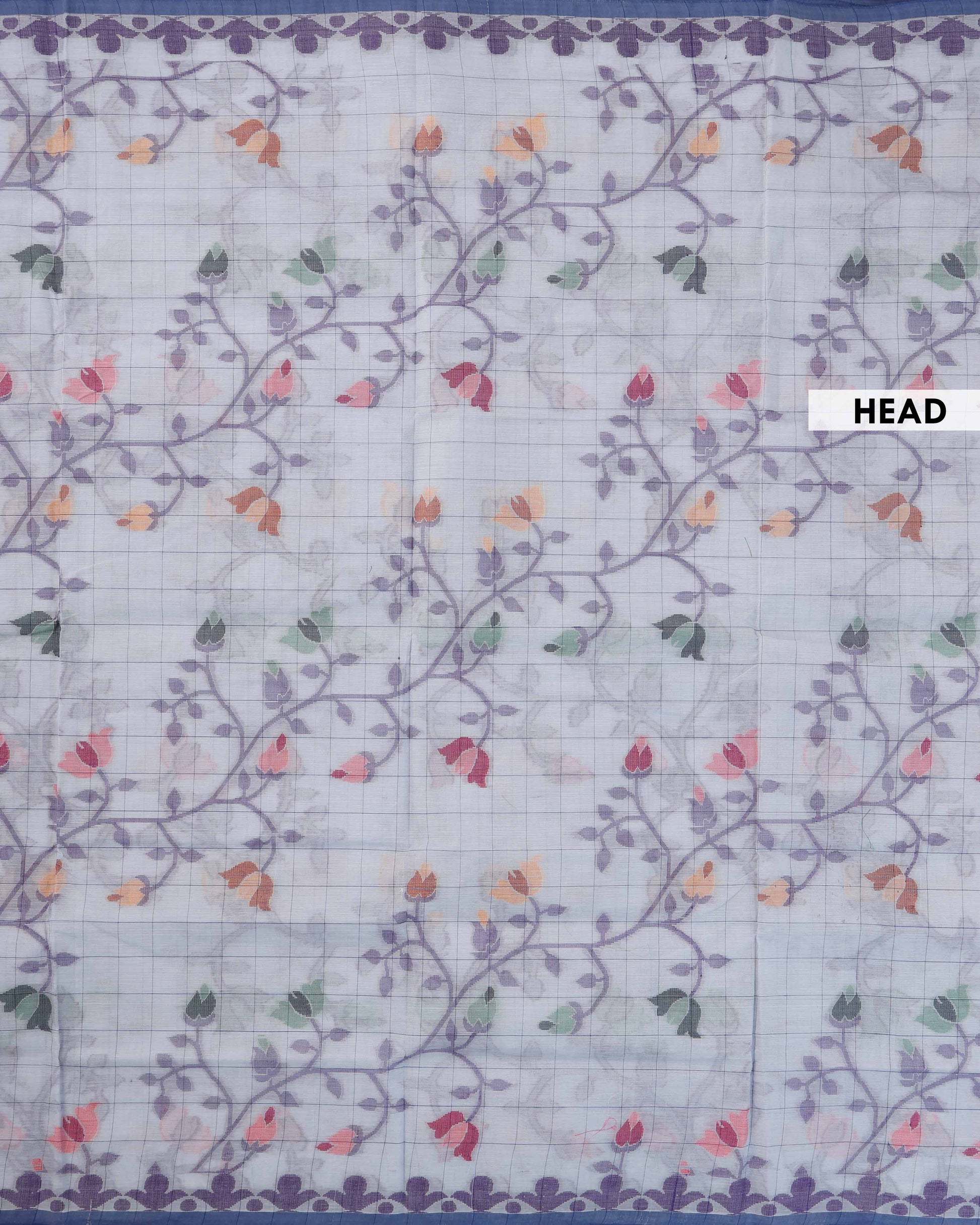 Checked Bengal Cotton Saree with Floral Vine Design and Contrast Border - Grey