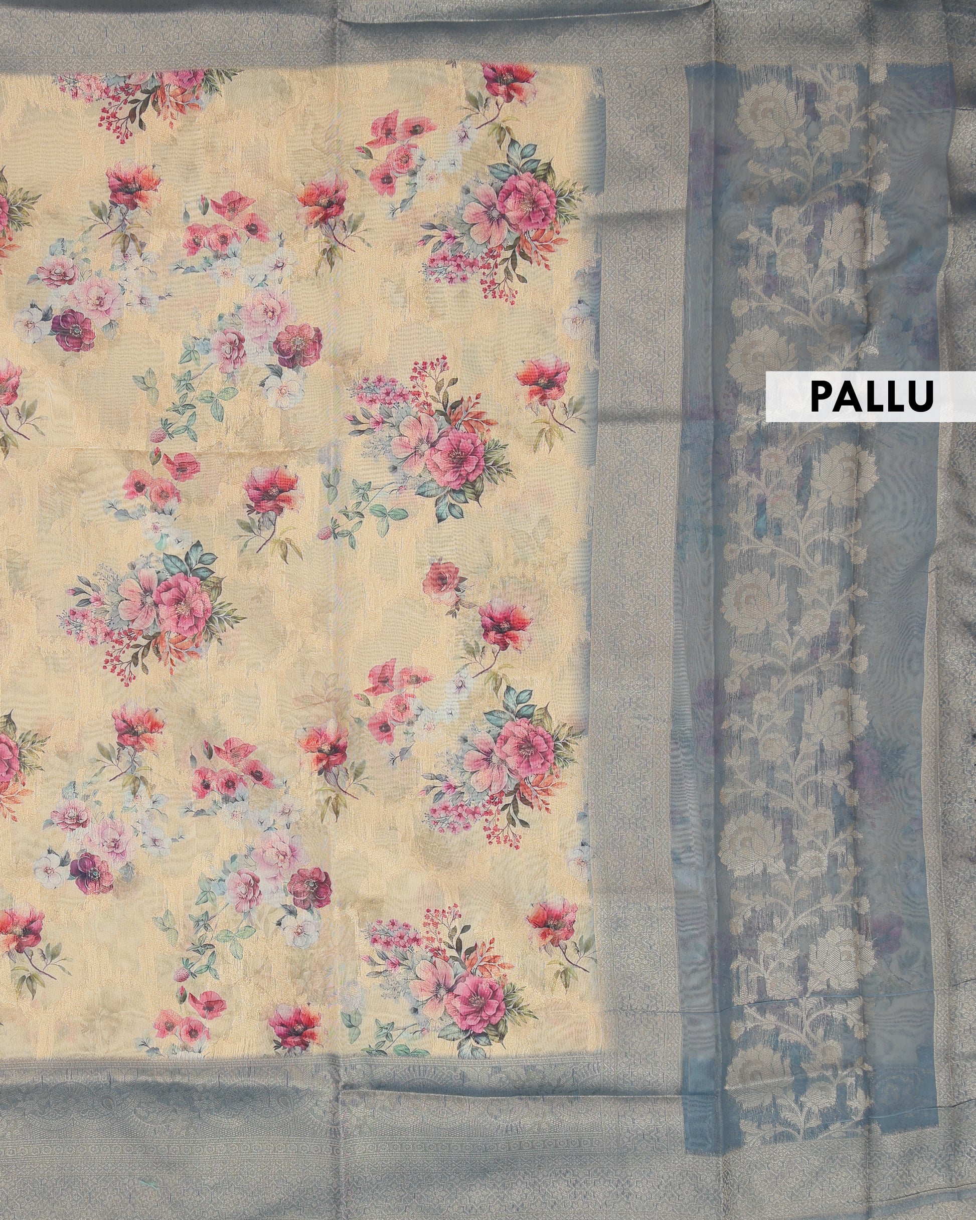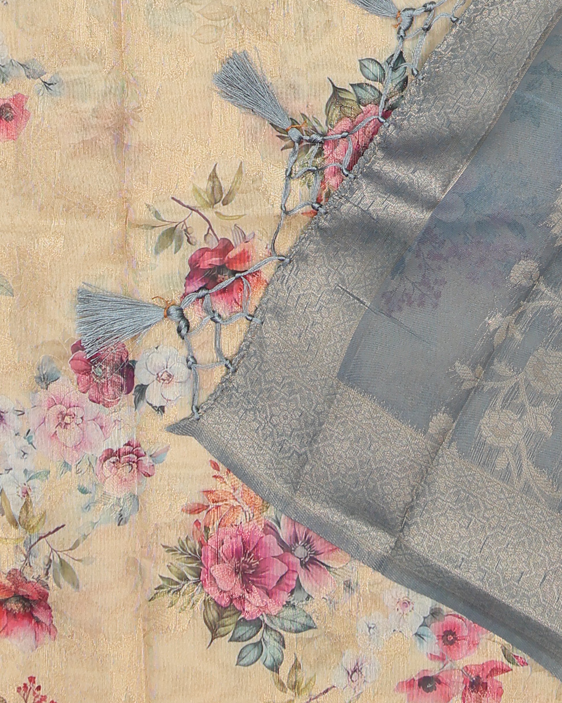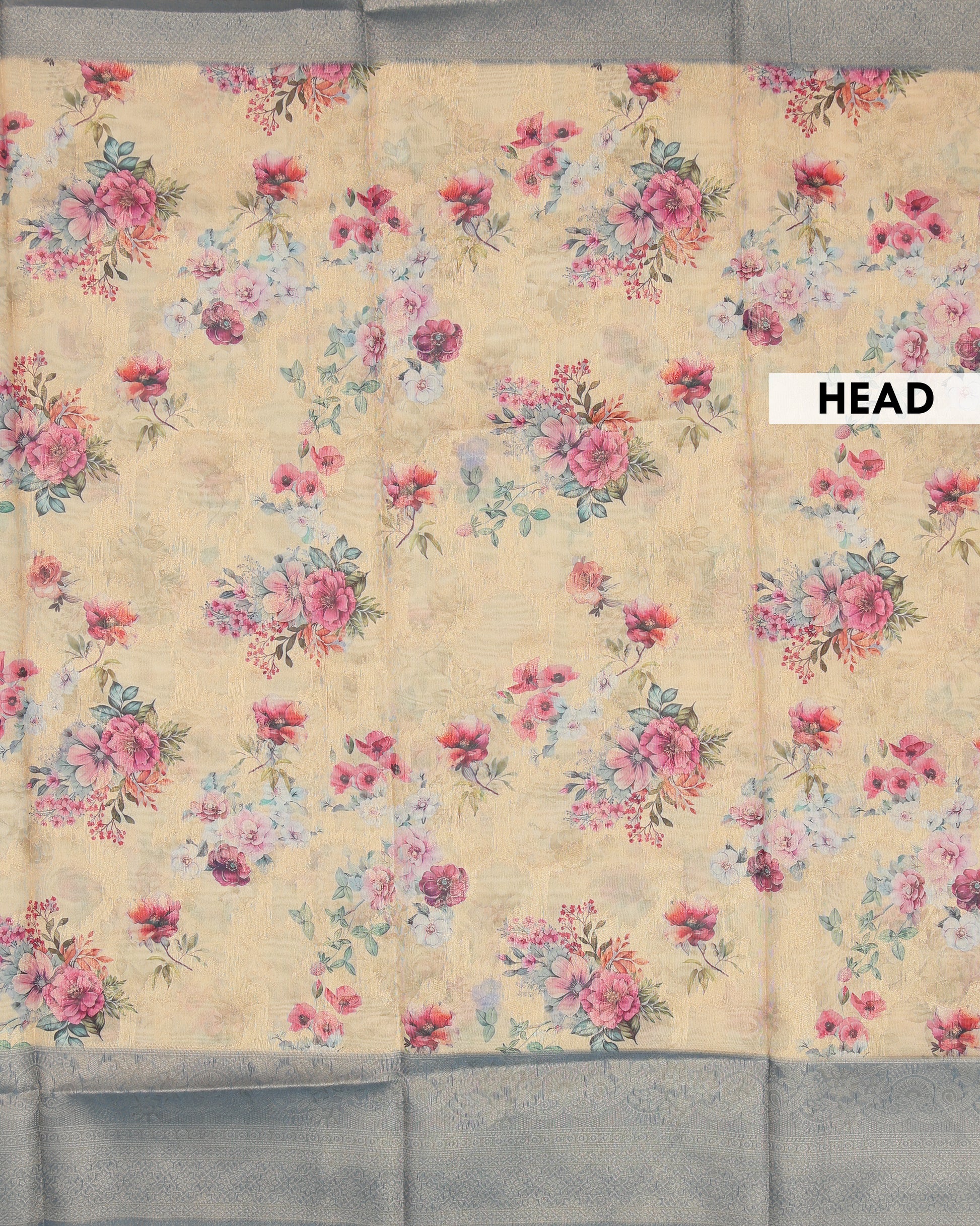 Floral Fancy Silk Saree with Contrast Zari Border - Sandal