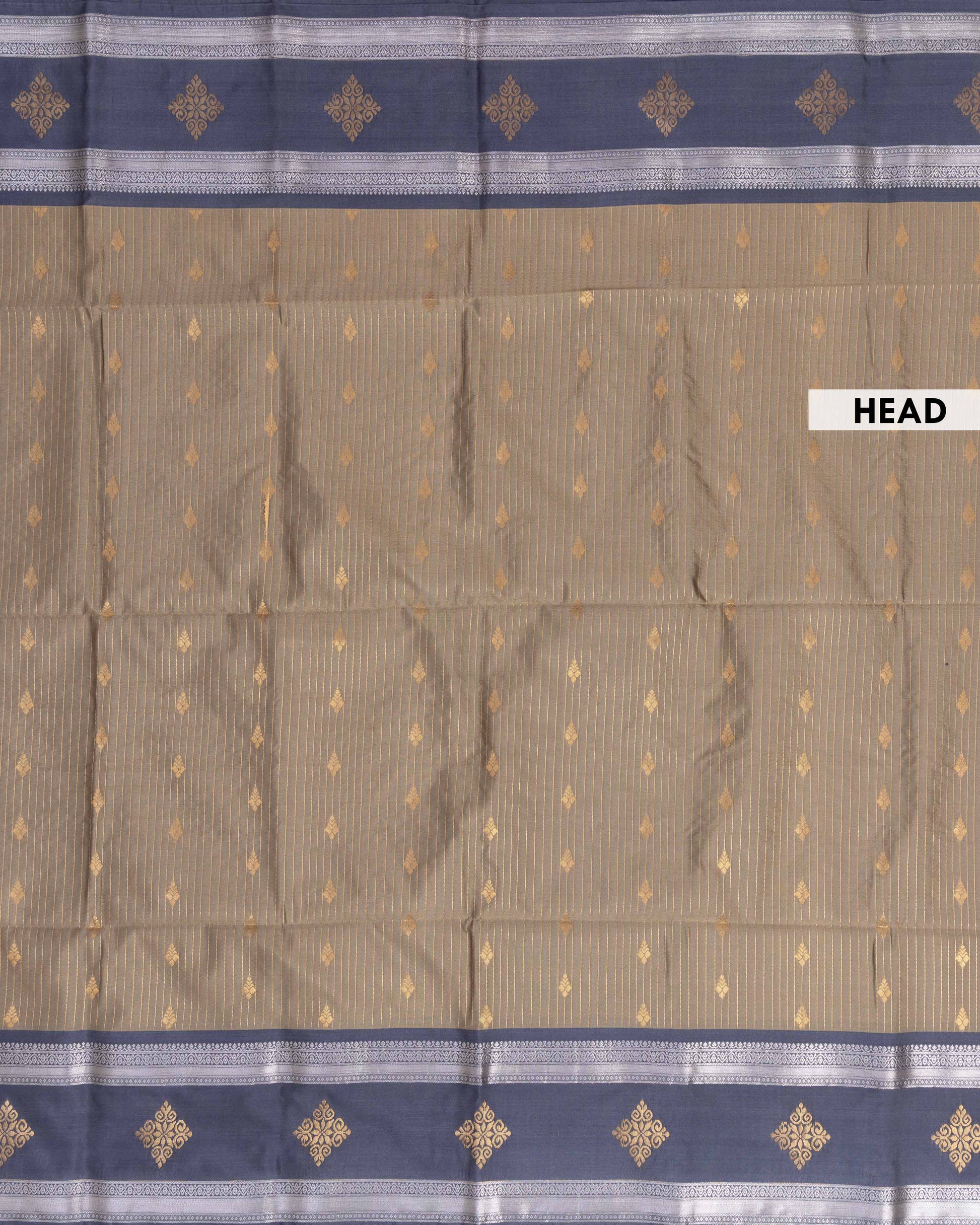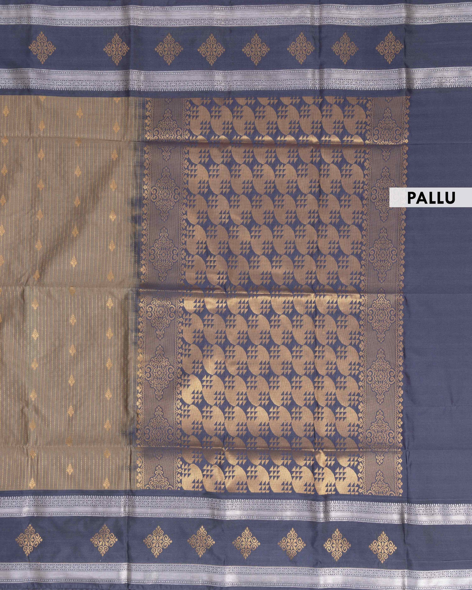 - This Semi Silk Saree elegant woven butta patterns and subtle golden stripes offering a rich and graceful traditional look