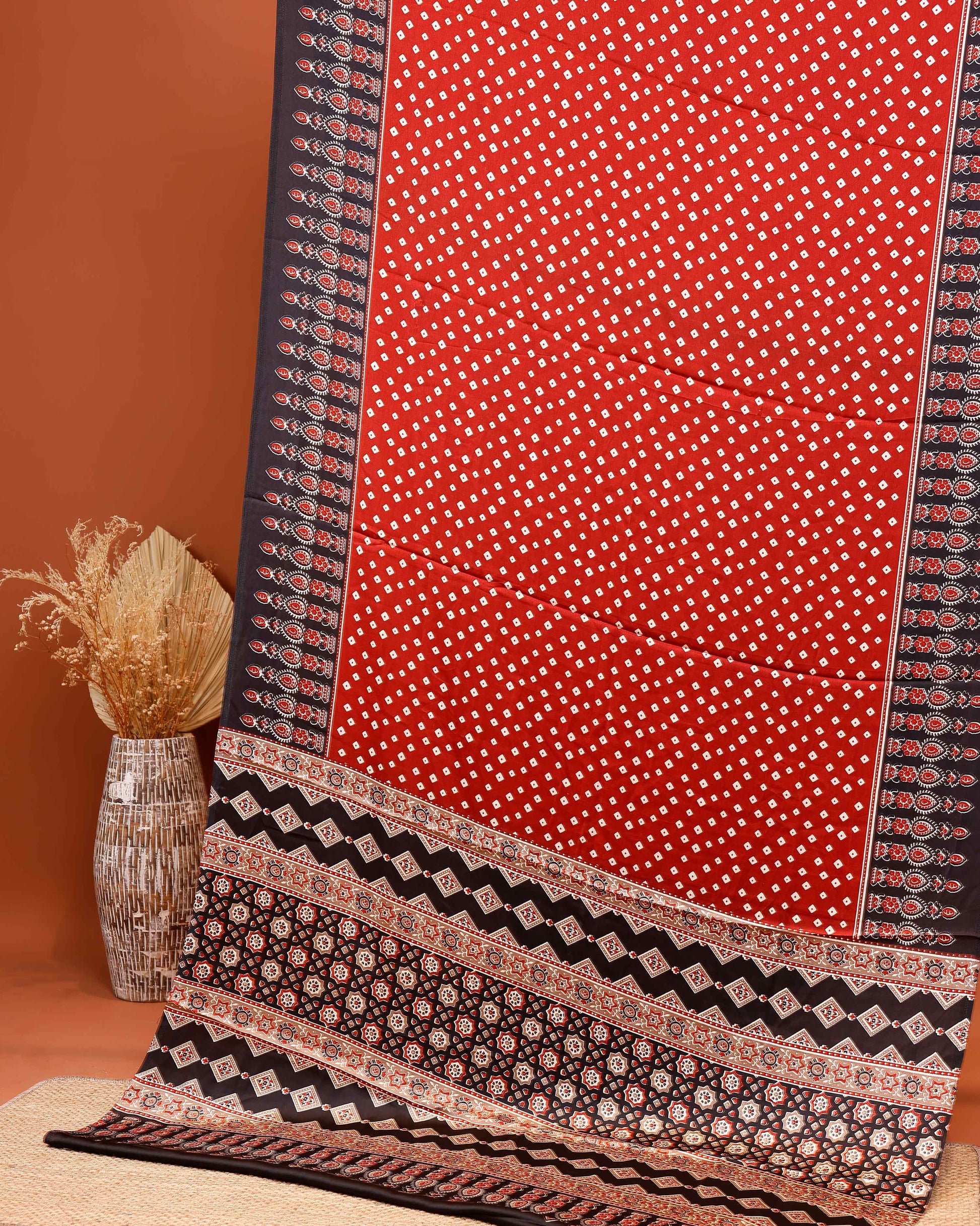 Elegant Modal Satin Saree with Traditional Bandhani-Inspired Body Print and Intricate Border Design - Red