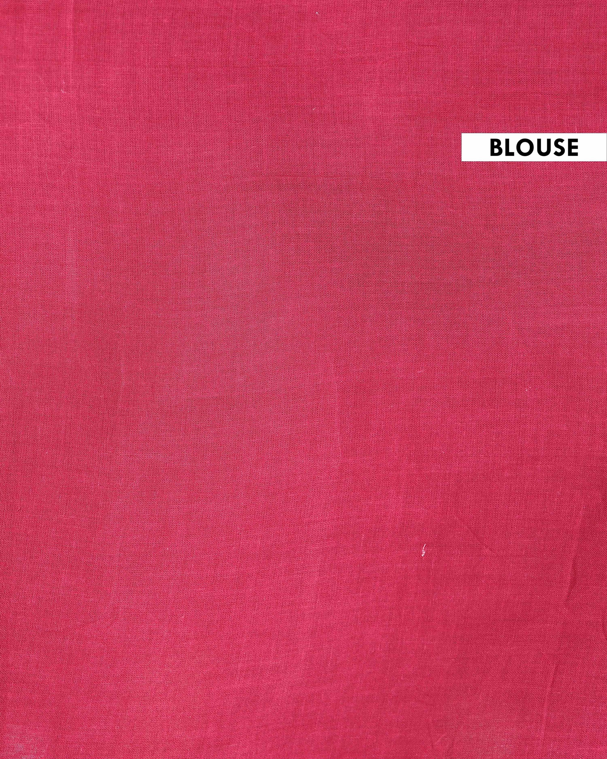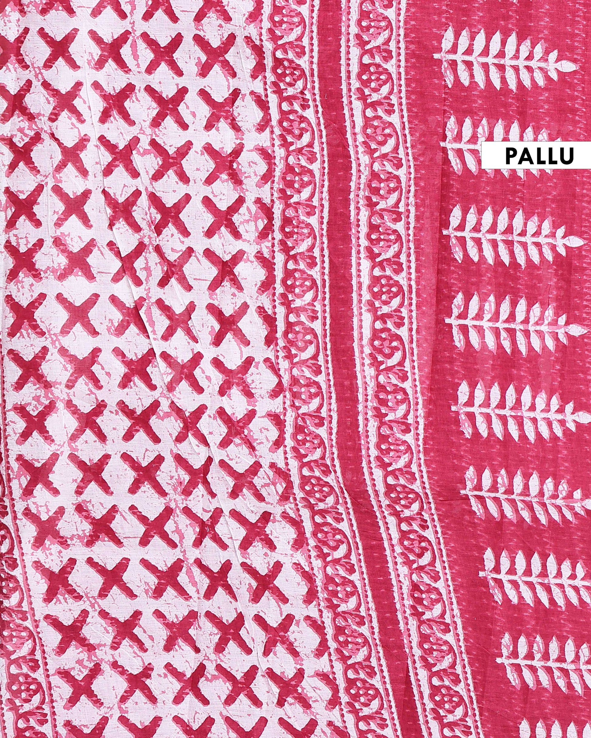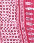 Hand Block Printed Mul Mul Semi Cotton Saree with Floral and Contrast Border - Pink