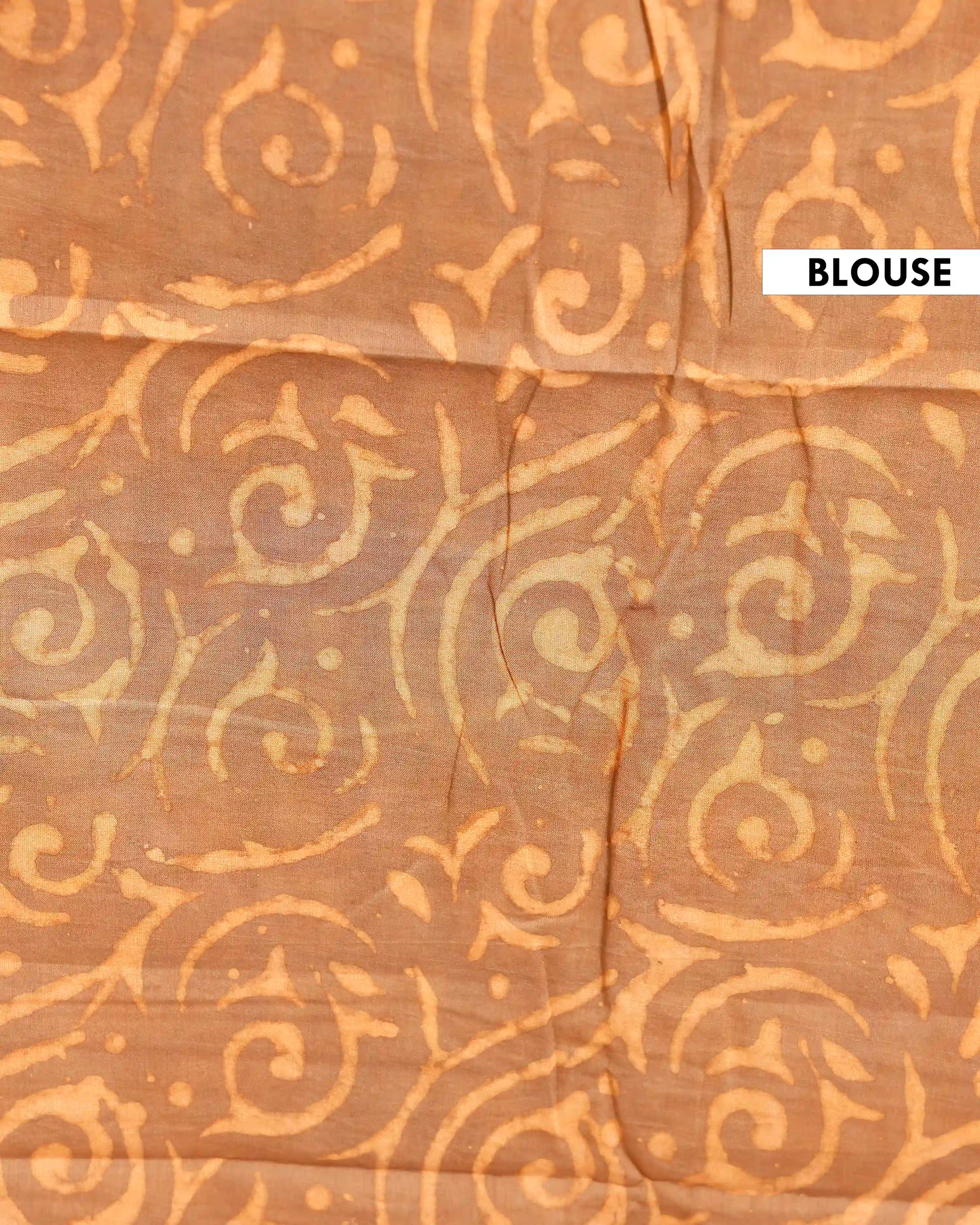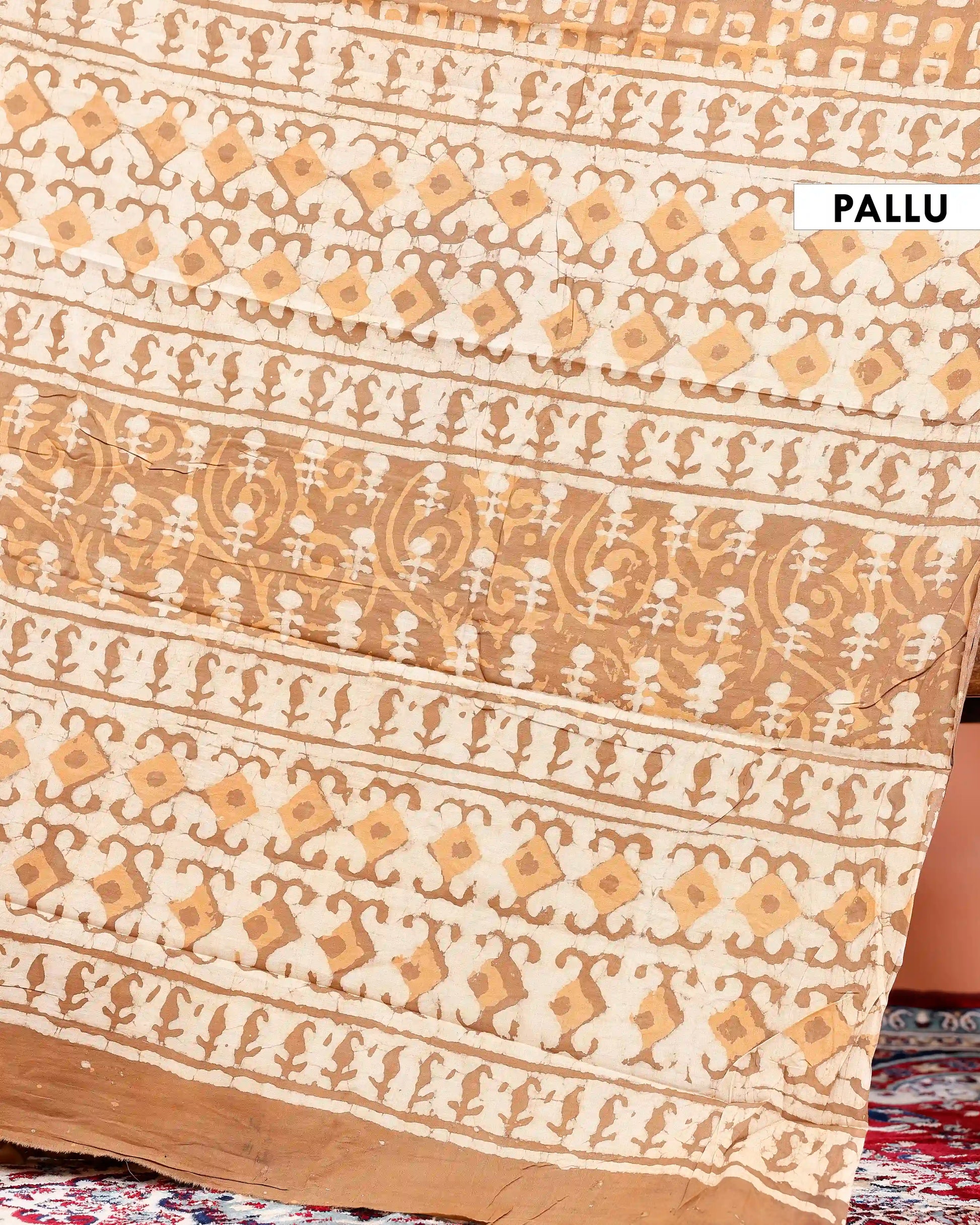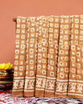Hand Block Printed Mul Mul Cotton Saree with Geometric & Border Motifs - Brown