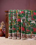 Handcrafted Kalamkari Cotton Saree with Traditional Animal and Nature Motifs - Green