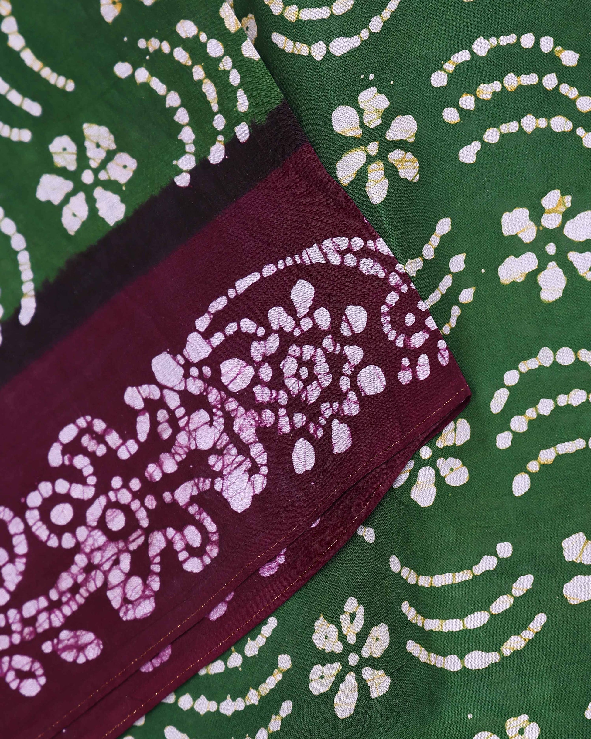 - Shop this stunning cotton wax batik saree with a rich maroon border online for a classic and comfortable style statement.