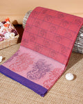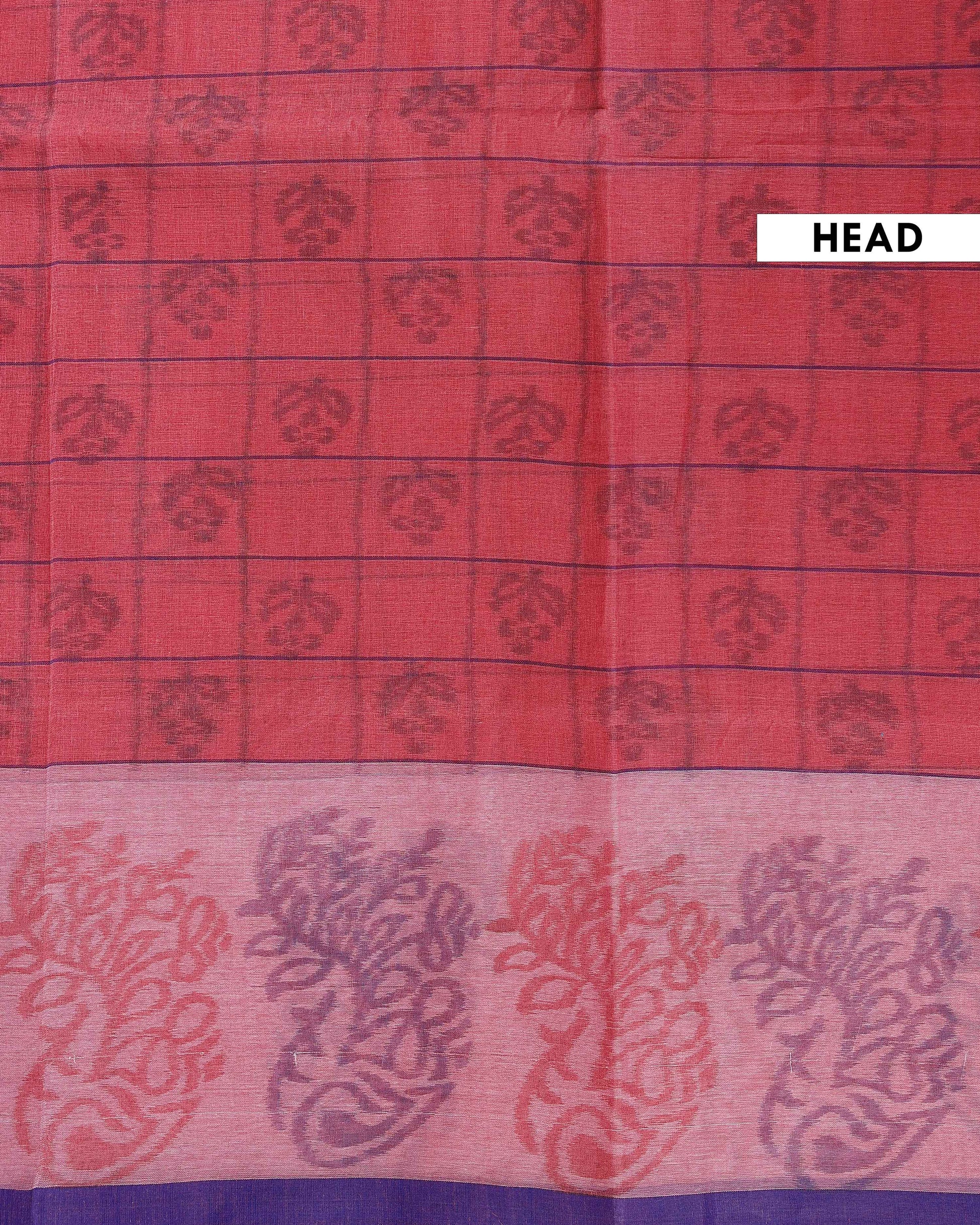 Handloom Bengal Cotton Saree with Checked Body and Intricate Pallu Design - Pink