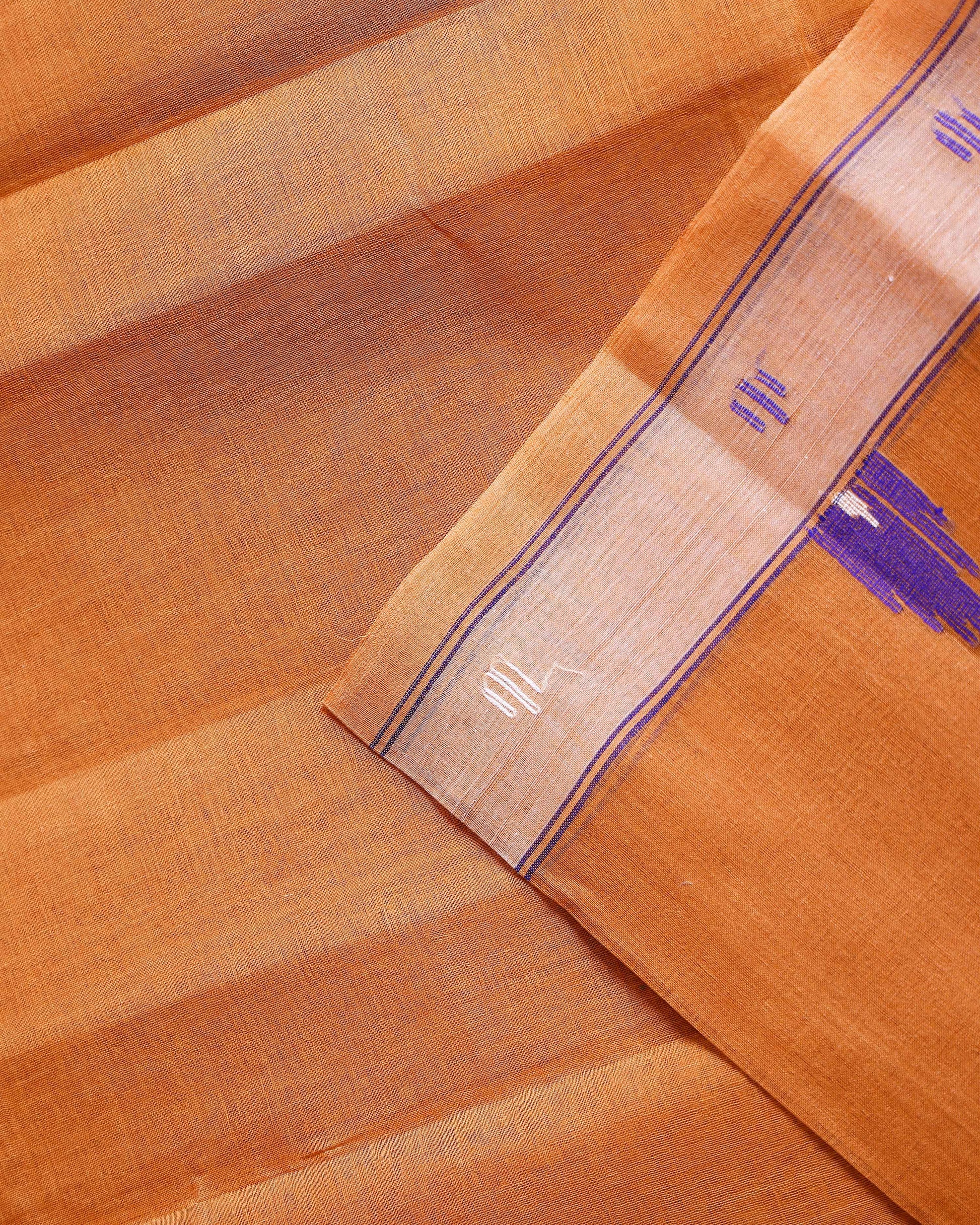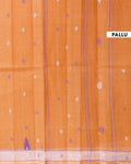 Handloom Bengal Cotton Saree with Traditional Jamdani Motifs and Border Detailing - Orange