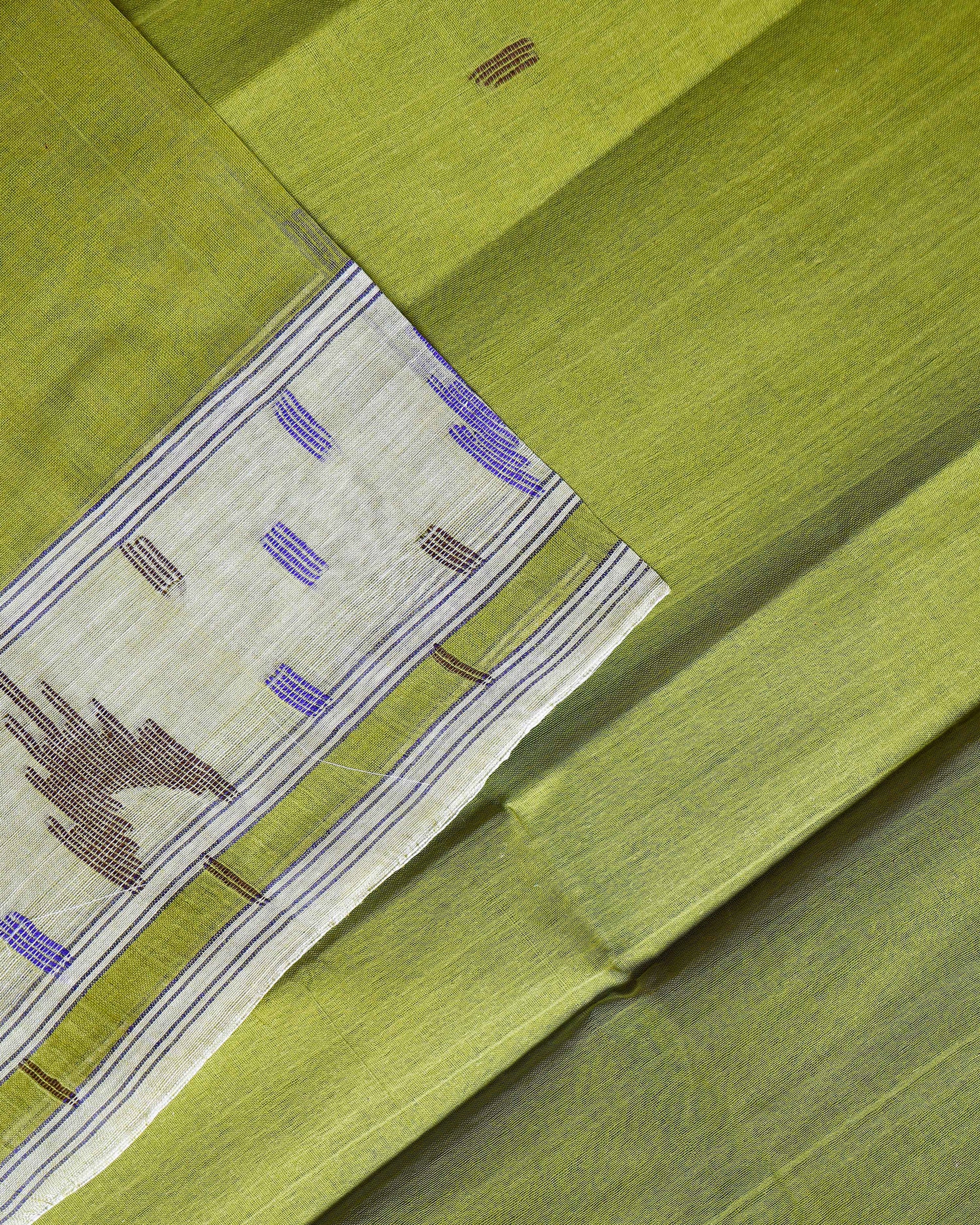Handloom Bengal Cotton Saree with Traditional Jamdani Motifs and Border Detailing - Green