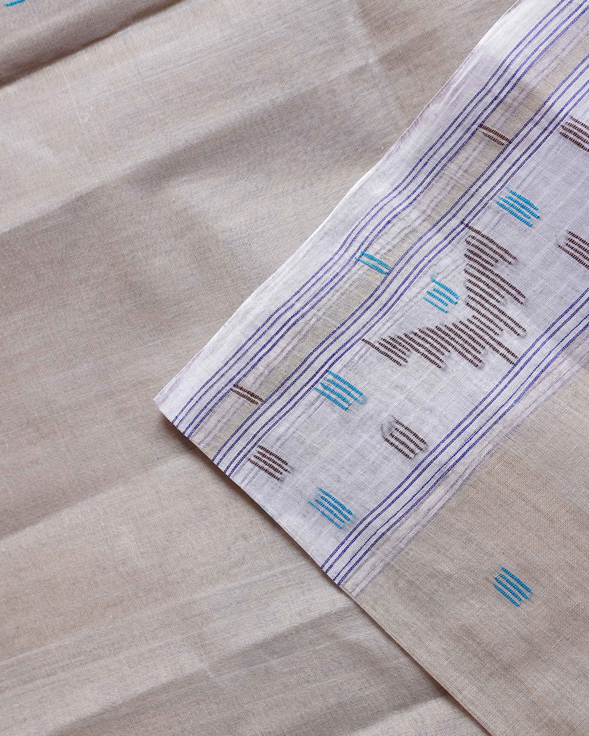 Handloom Bengal Cotton Saree with Traditional Jamdani Motifs and Border Detailing - Beige