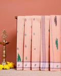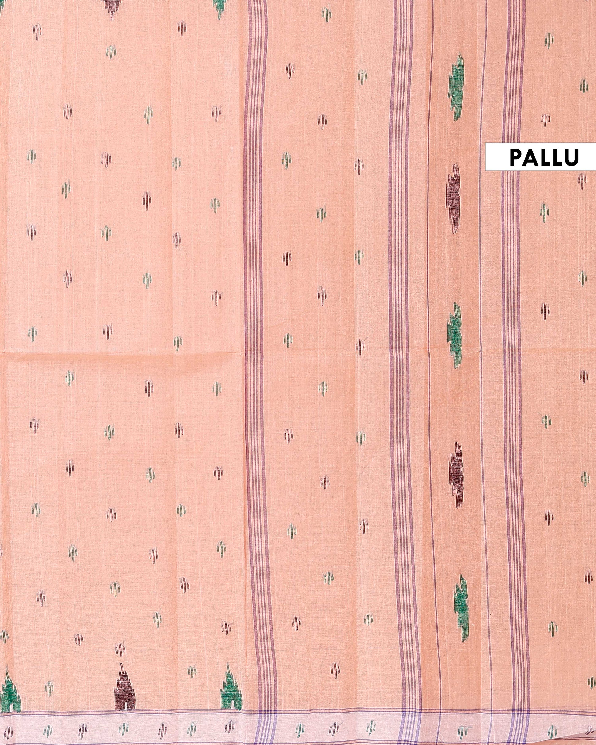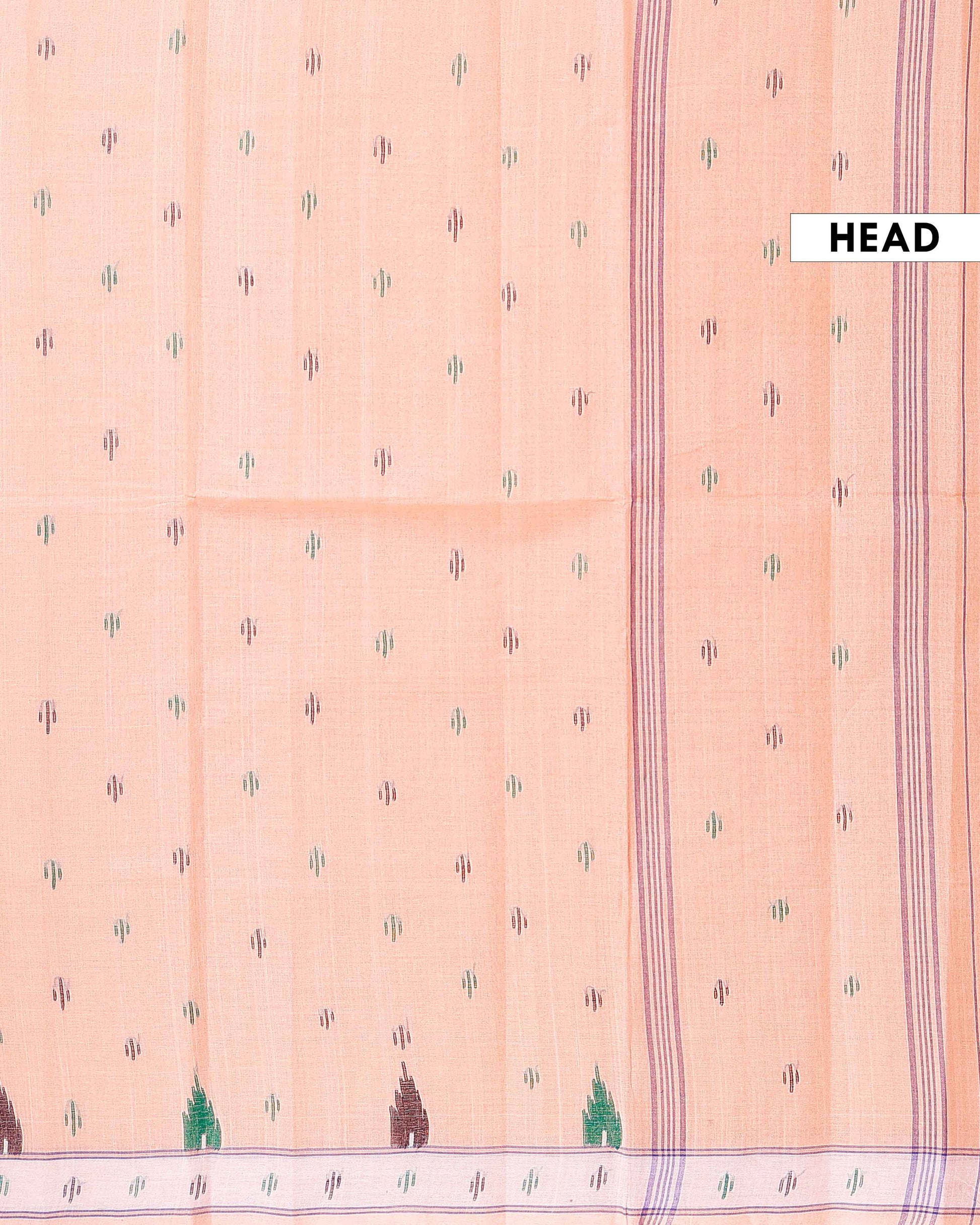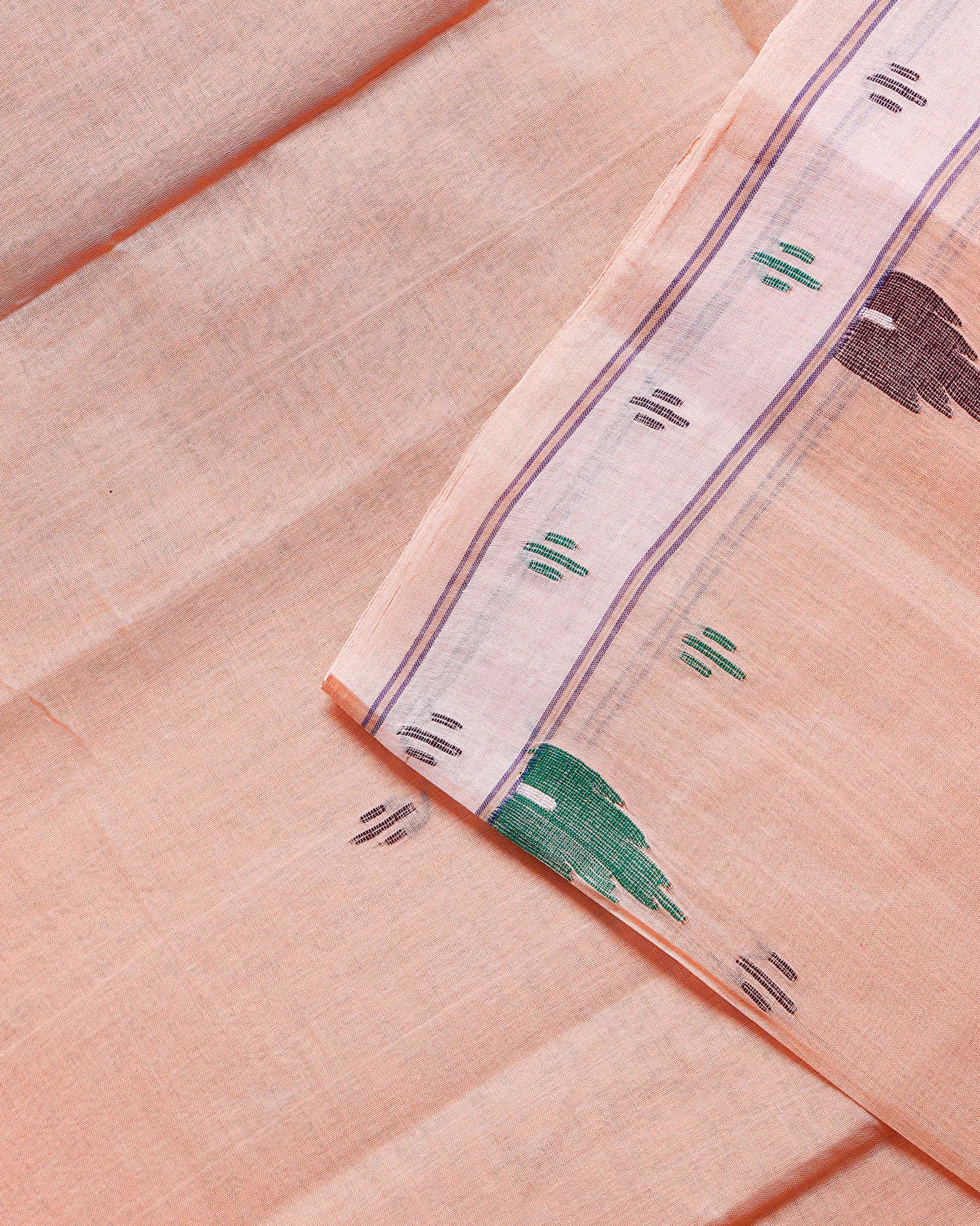 Handloom Bengal Cotton Saree with Traditional Jamdani Motifs and Border Detailing - Peach