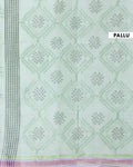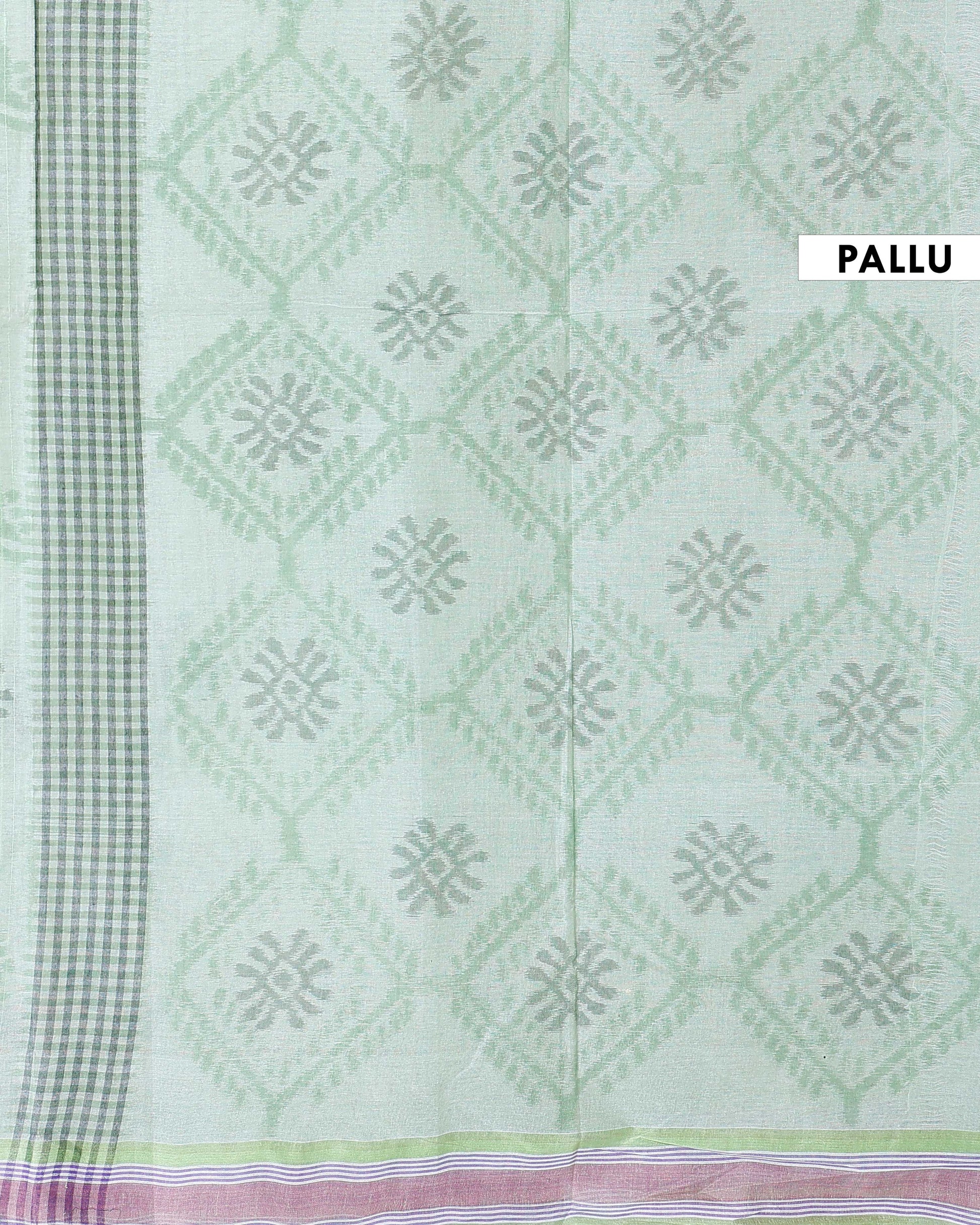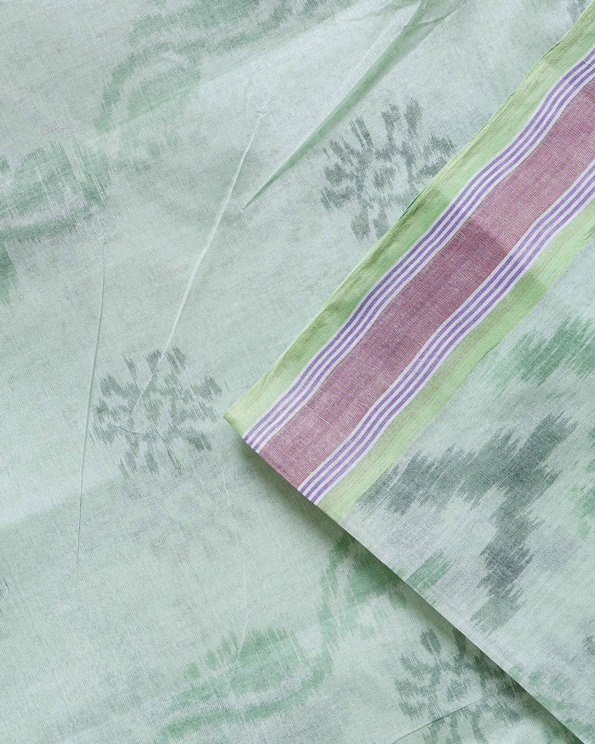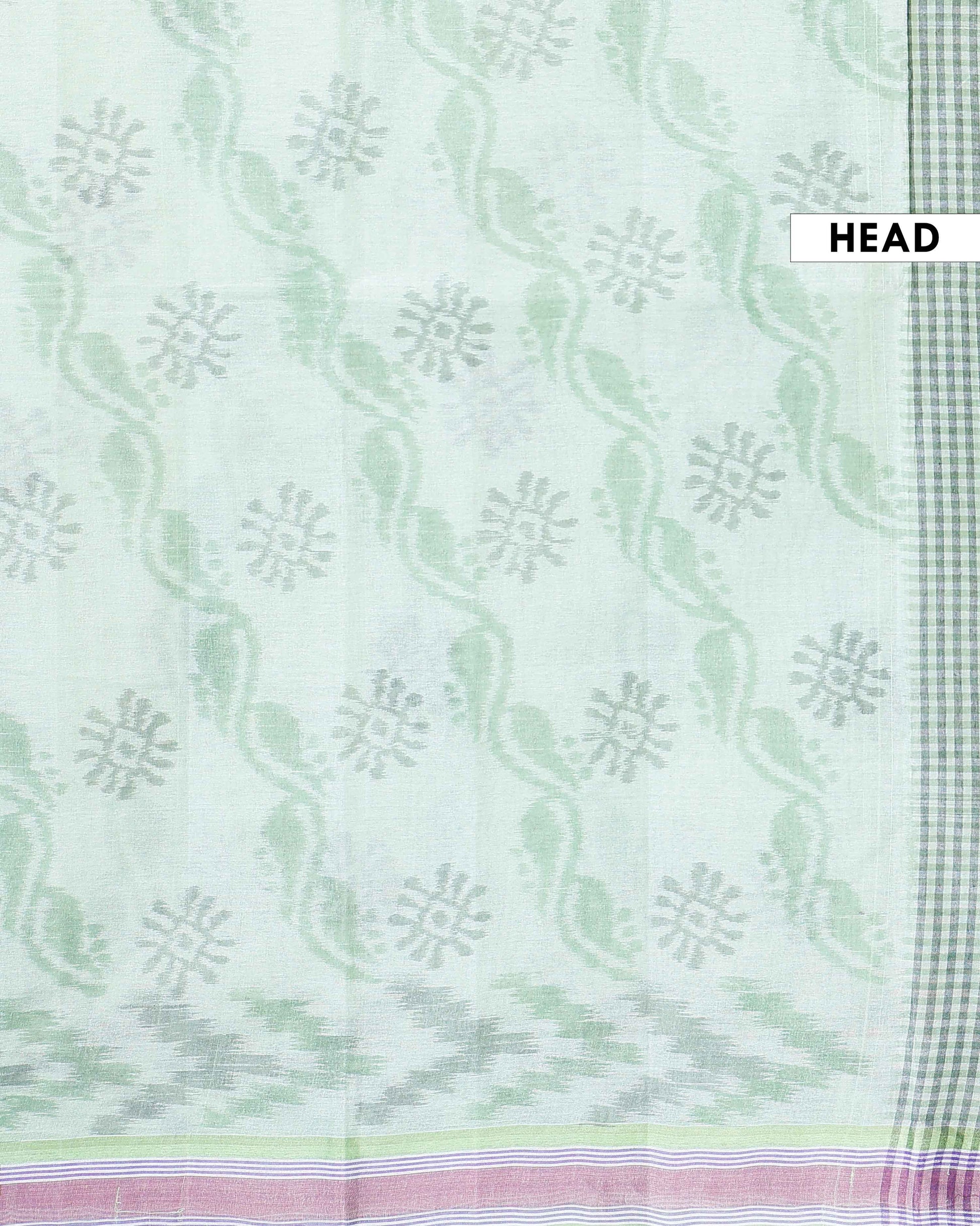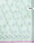 Traditional Bengal Cotton Saree with Floral Block Print and Striped Border - Green