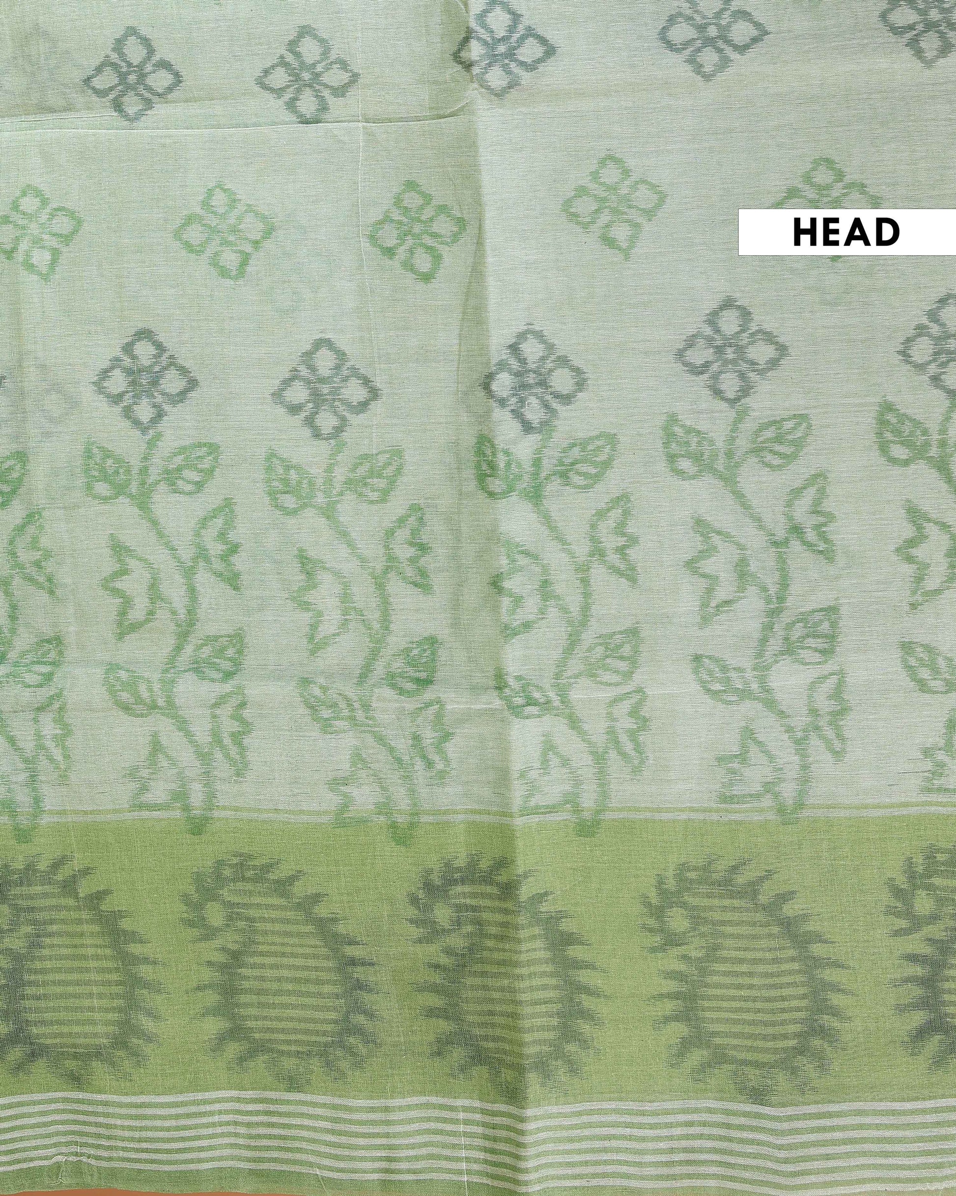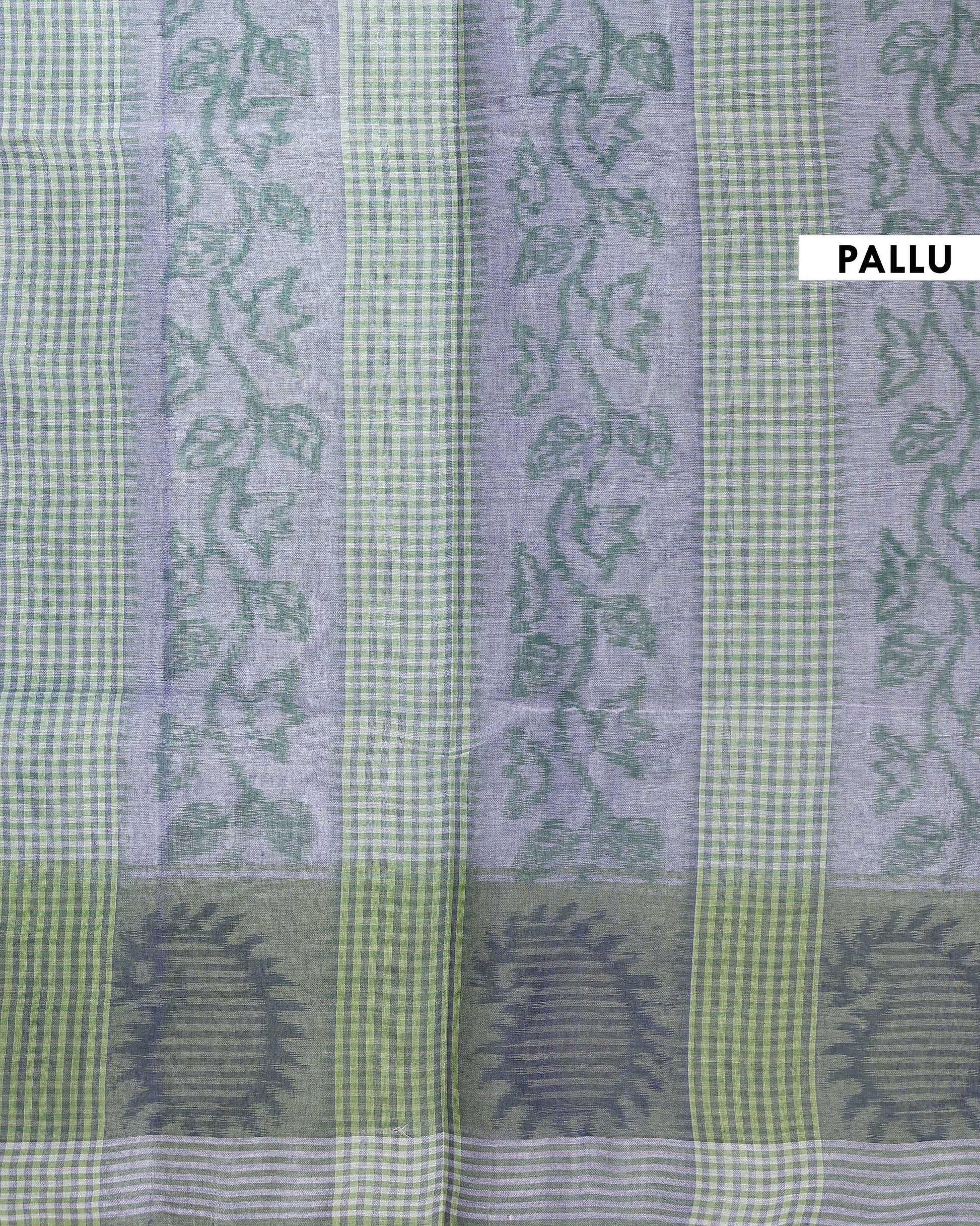 Handloom Bengal Cotton Saree with Woven Buta and Jamdani Border - Green