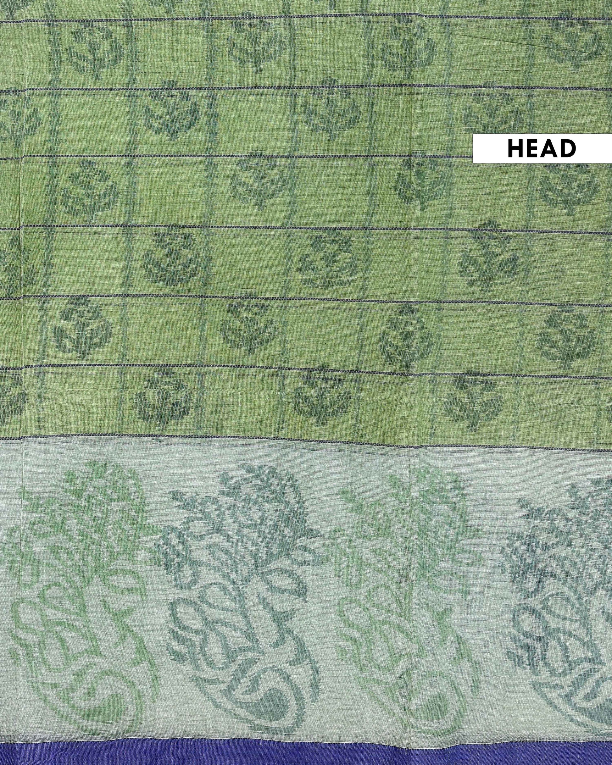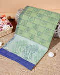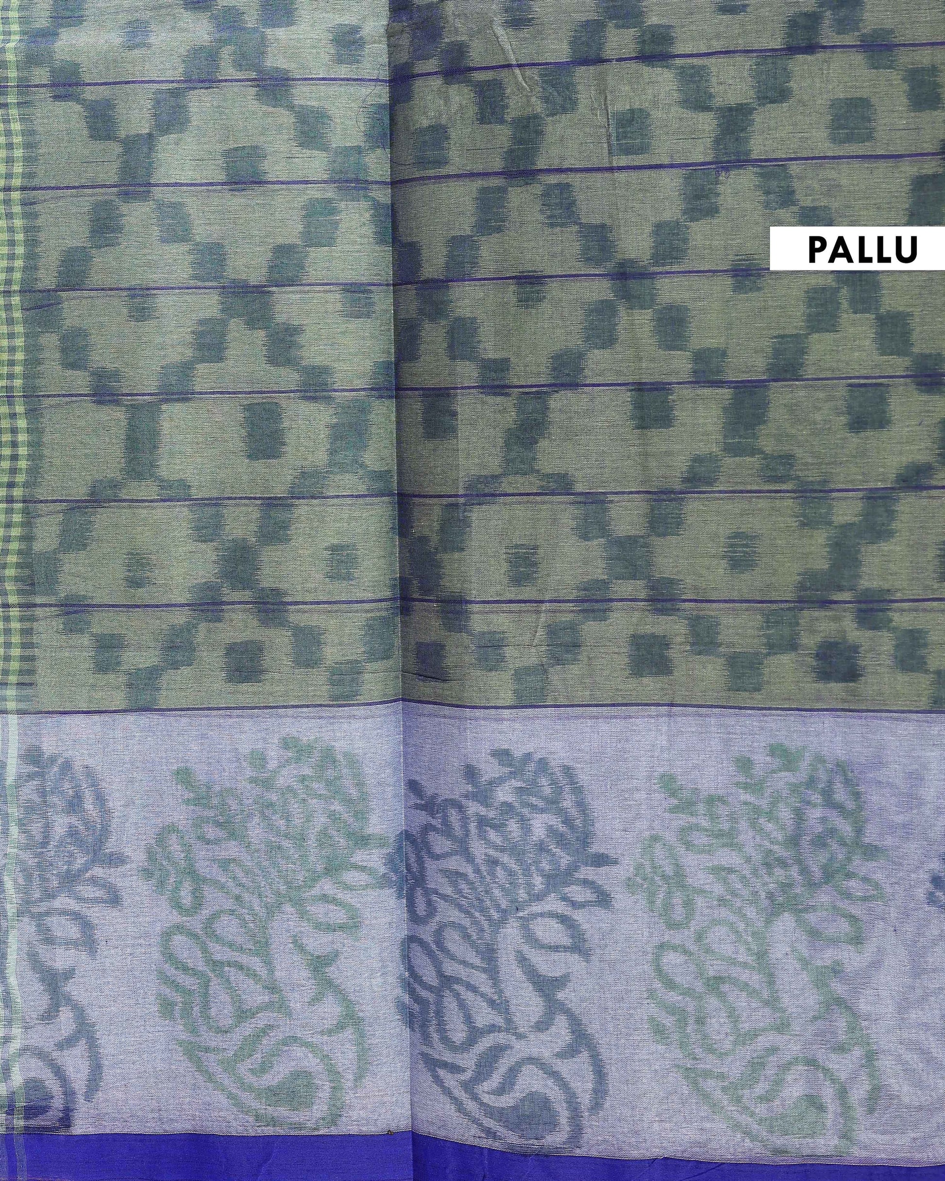 Handloom Bengal Cotton Saree with Checked Body and Intricate Pallu Design - Green
