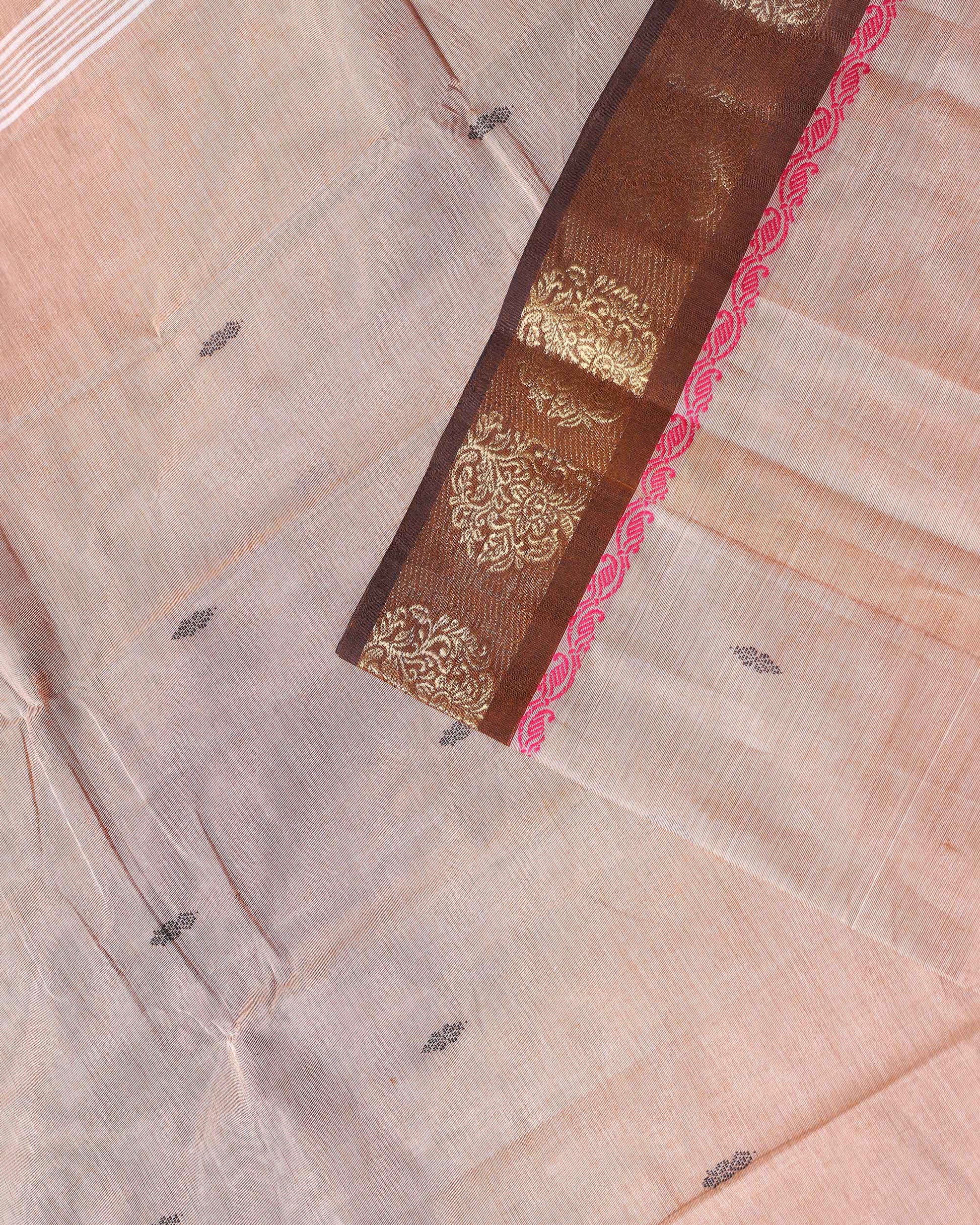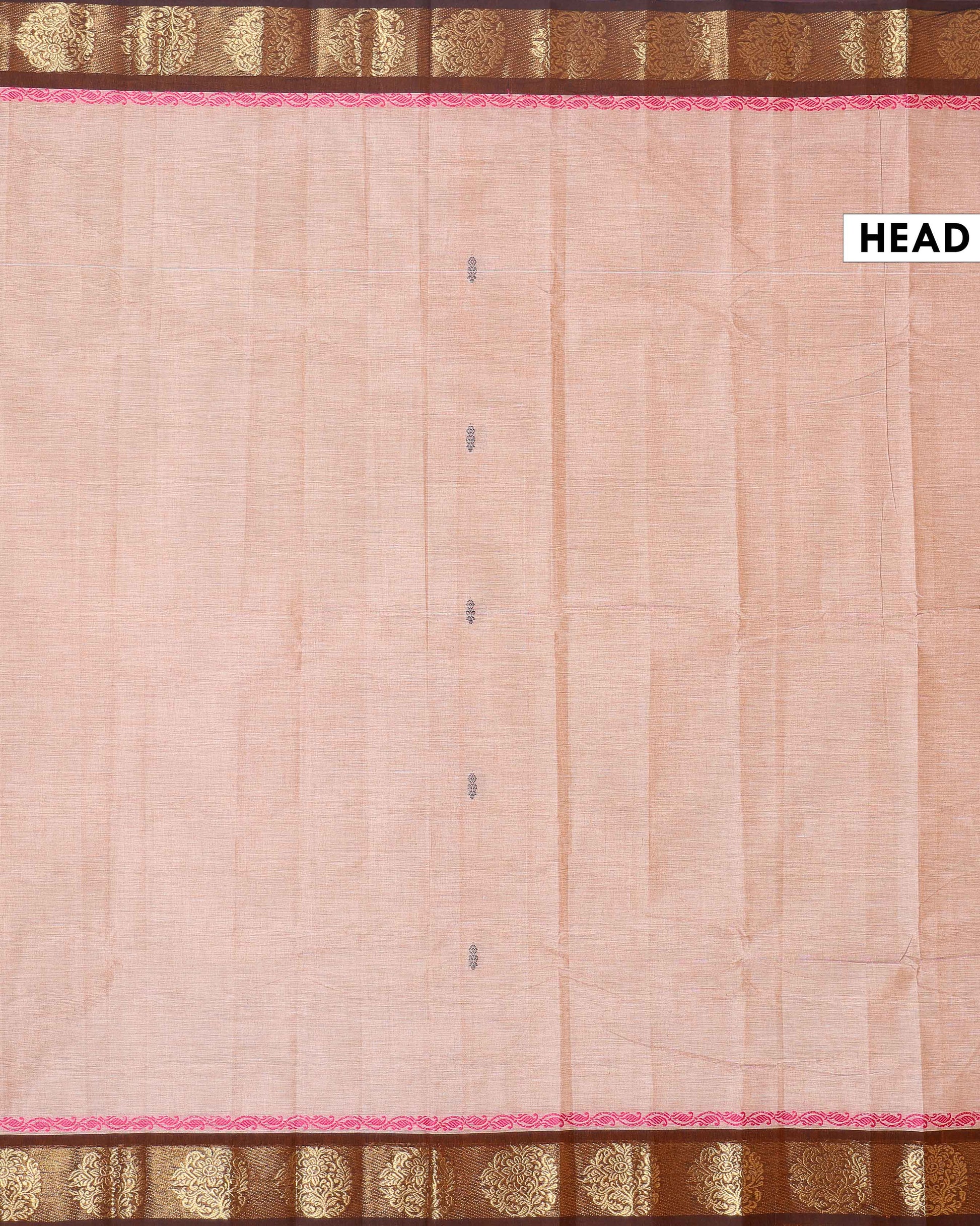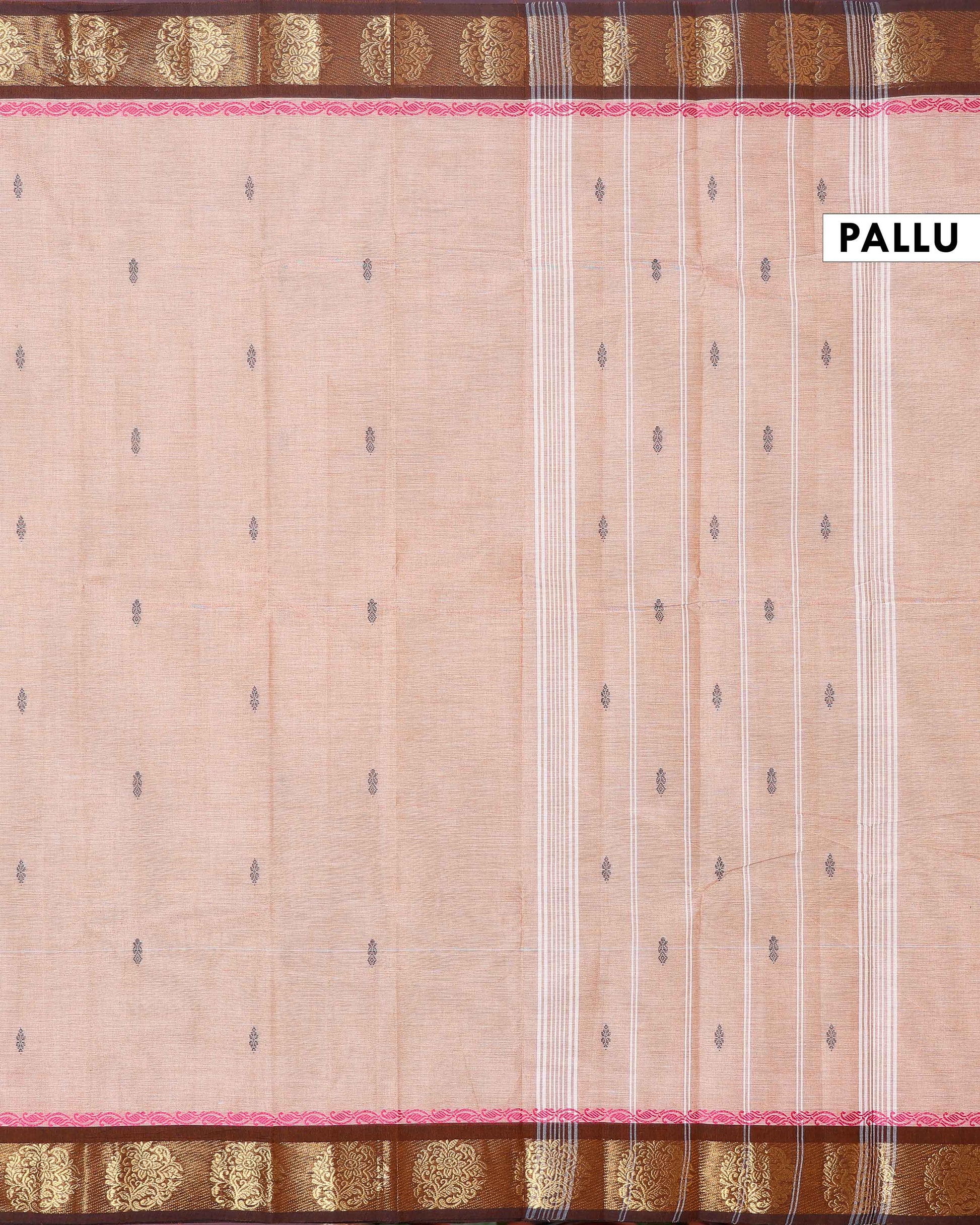 Handloom Chettinad Saree with Contrast Border and Paisley Designs - Sandal