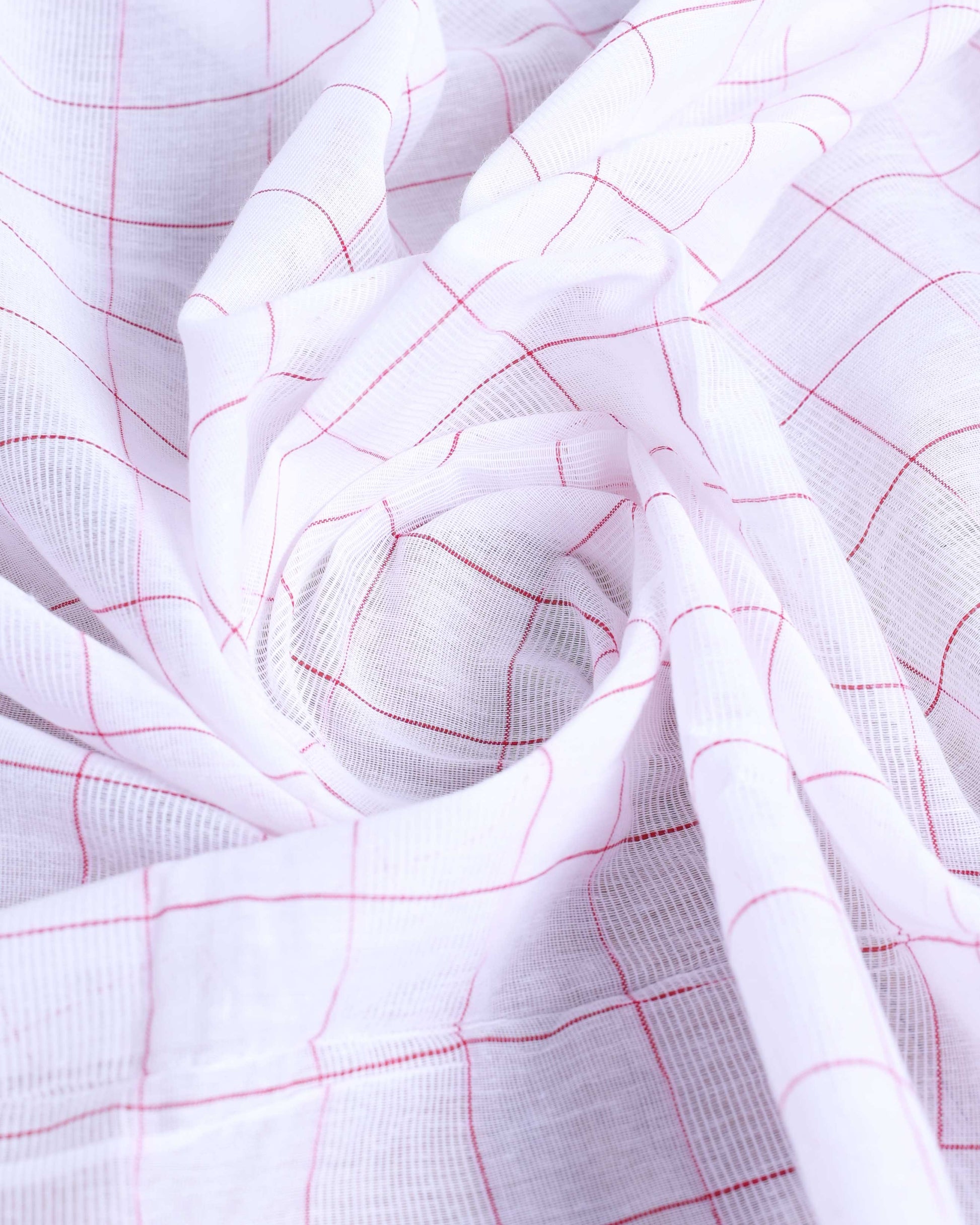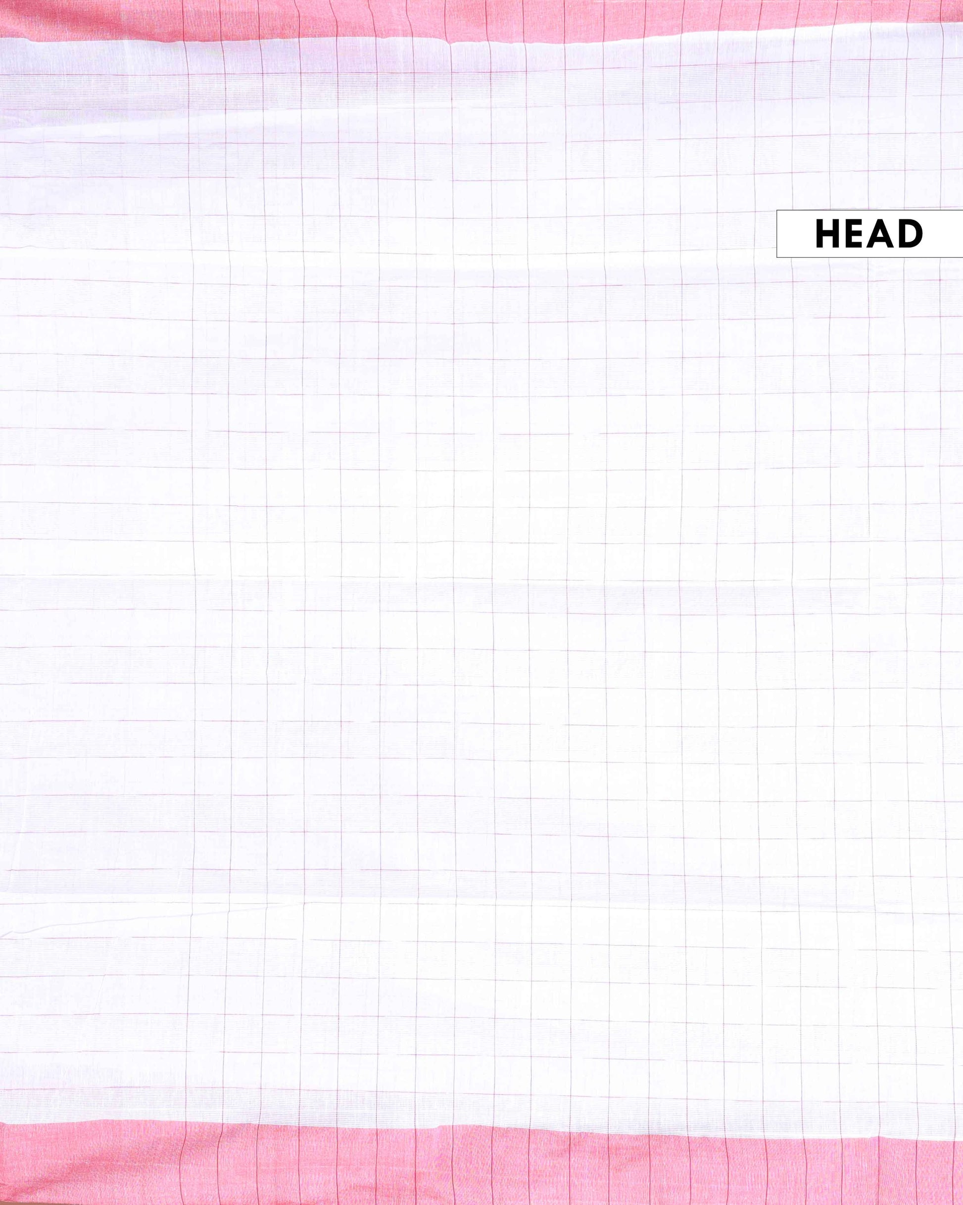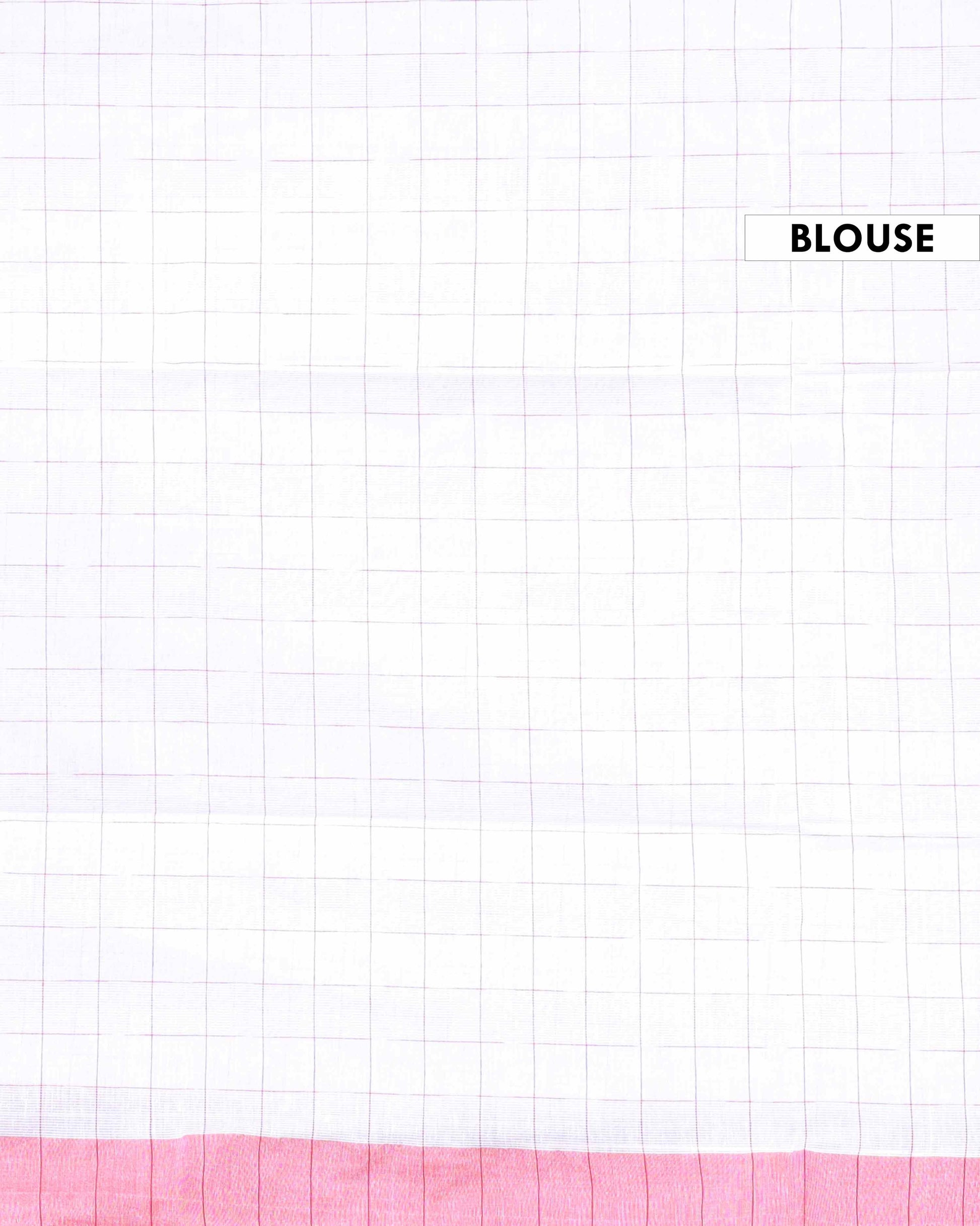 Handloom Cotton Saree with Checkered Body and Striped Pallu - Off White