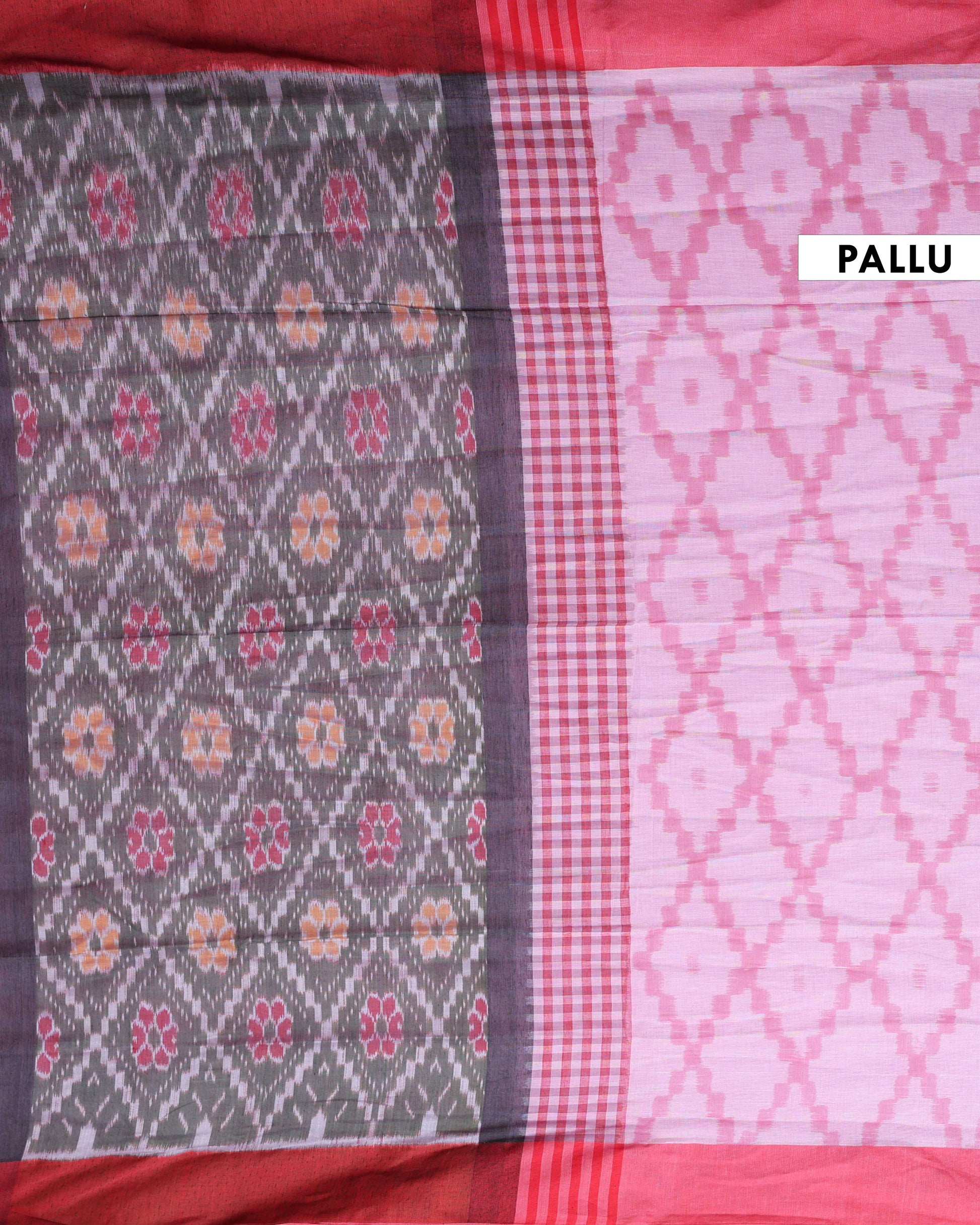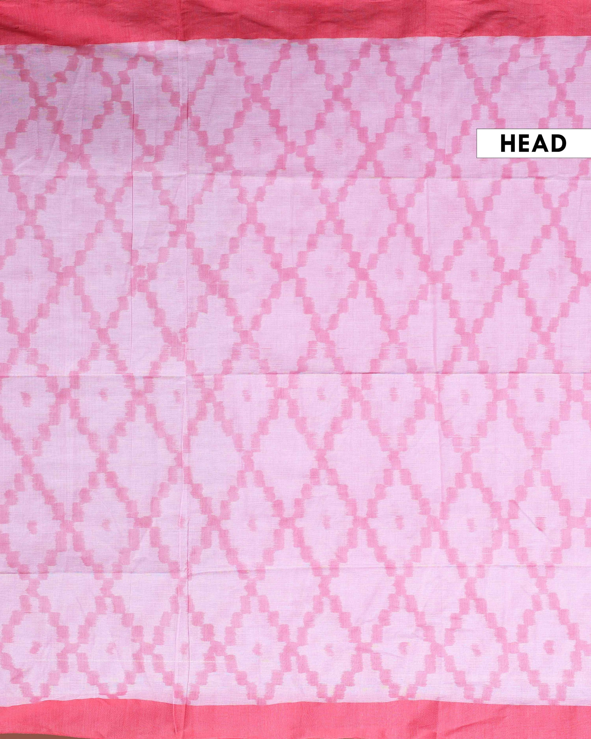 Handloom Ikkat Cotton Saree with Checkered Weave and Intricate Pallu - Pink