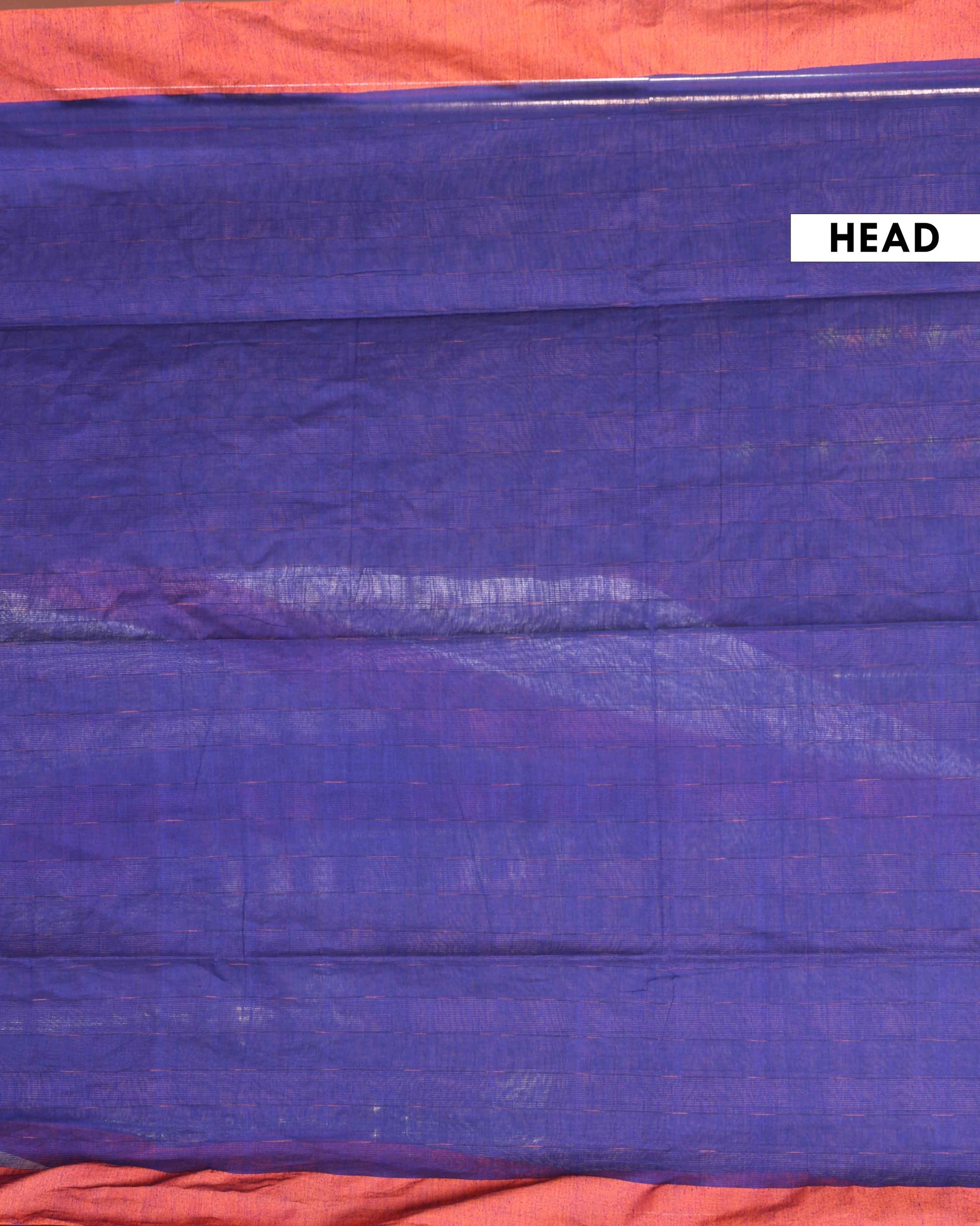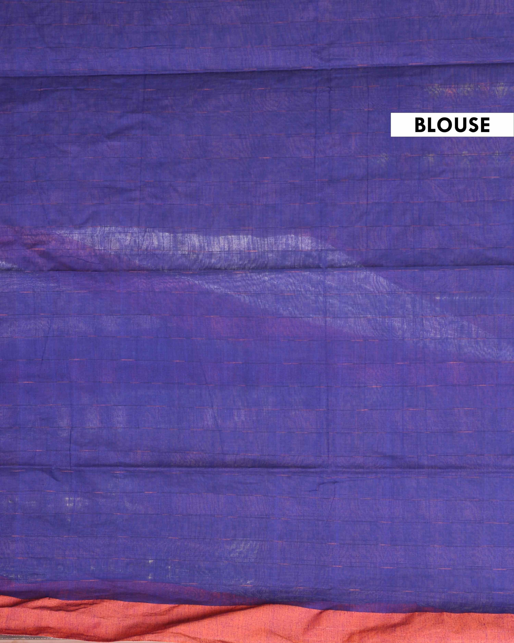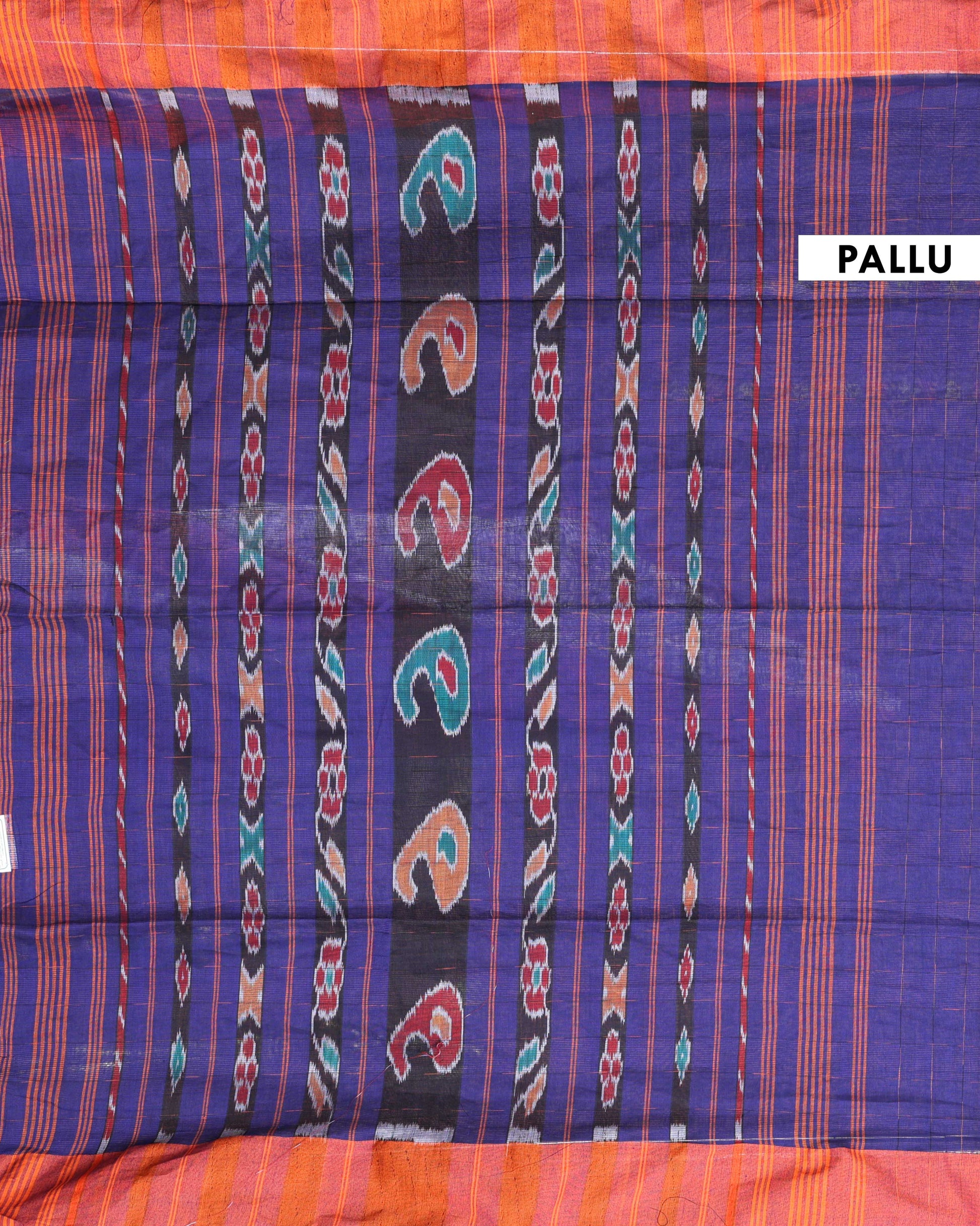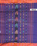 Handloom Ikkat Cotton Saree with Contrast Border and Striped Pallu - Blue