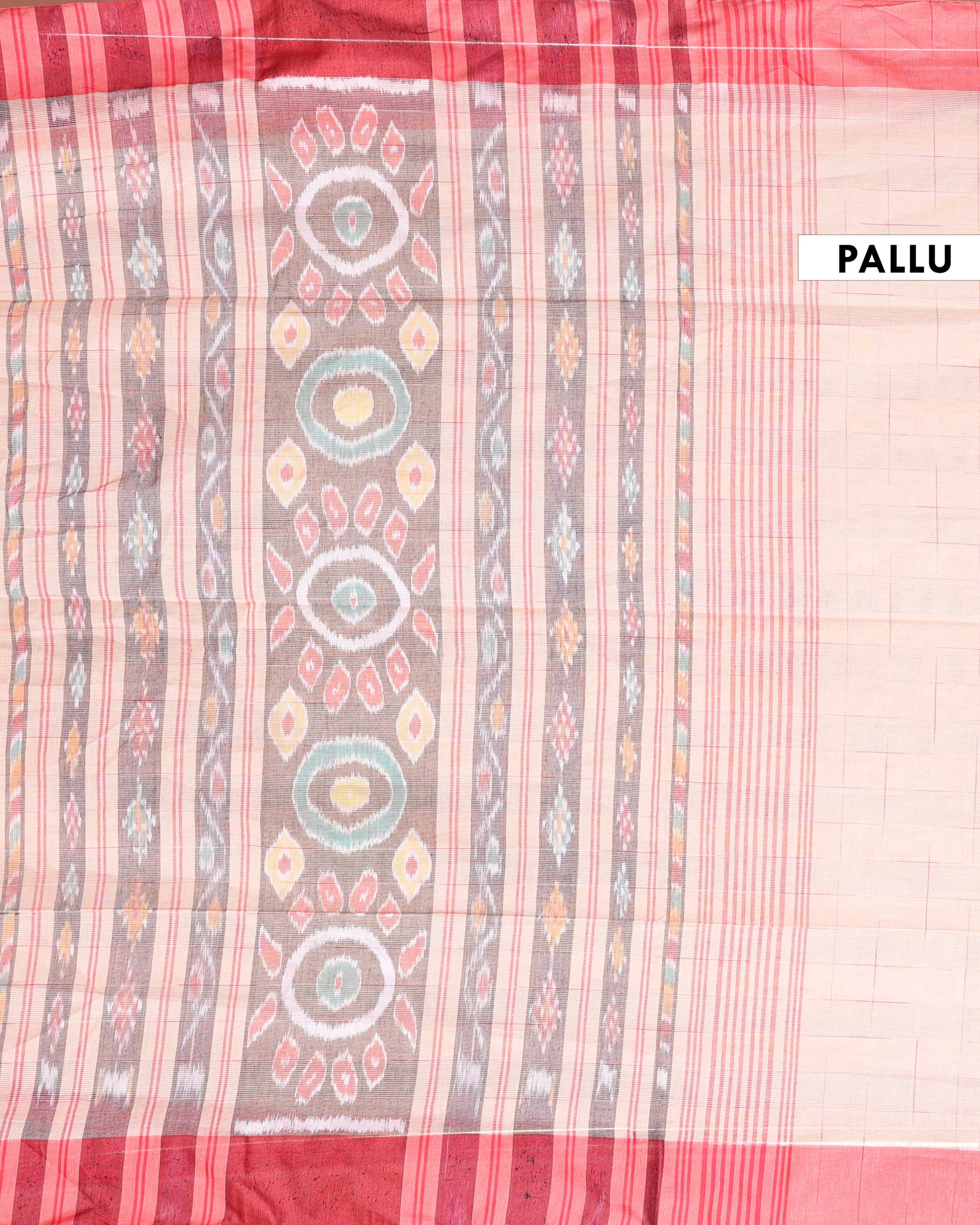 Handloom Ikkat Cotton Saree with Striped Body and Woven Pallu - Sandal