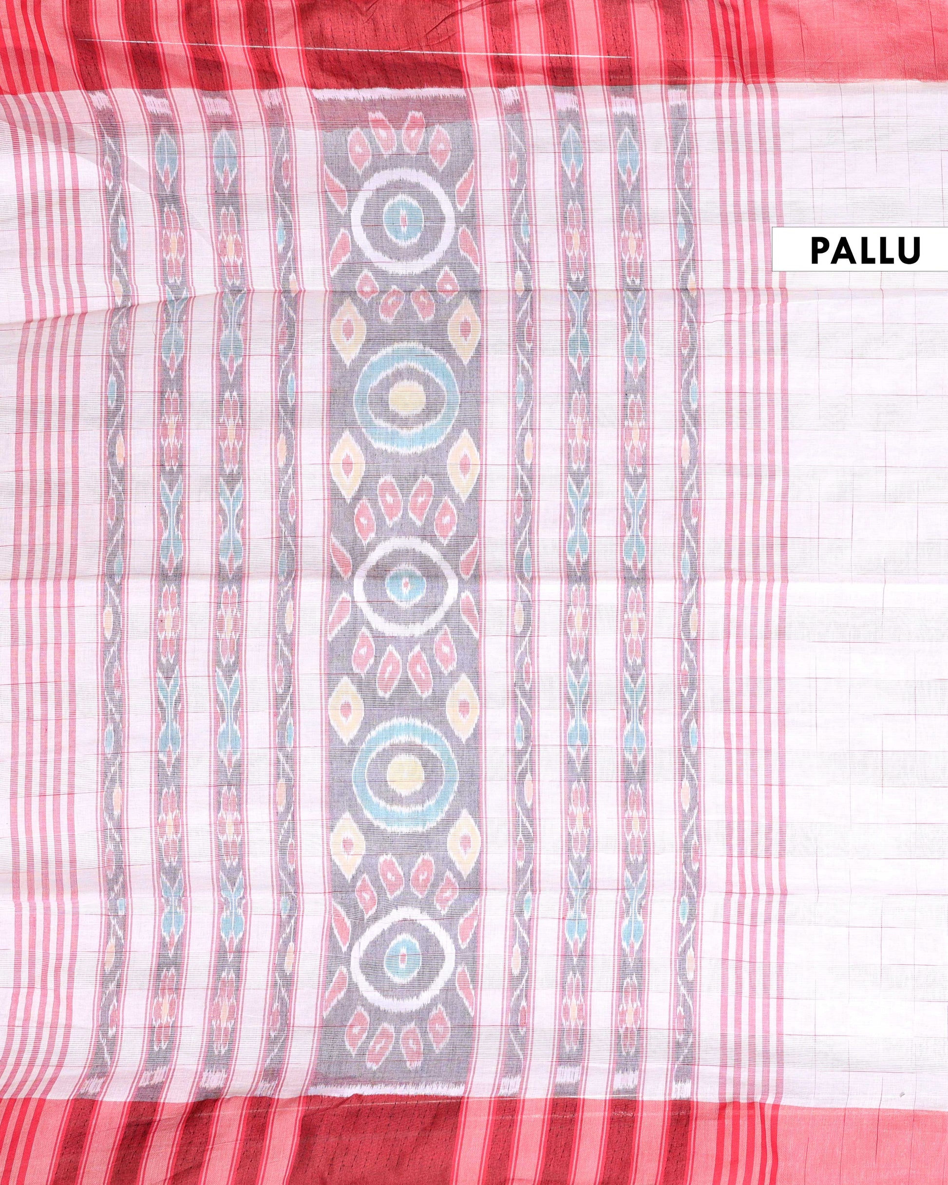 Handloom Ikkat Cotton Saree with Woven Striped Border - Off White