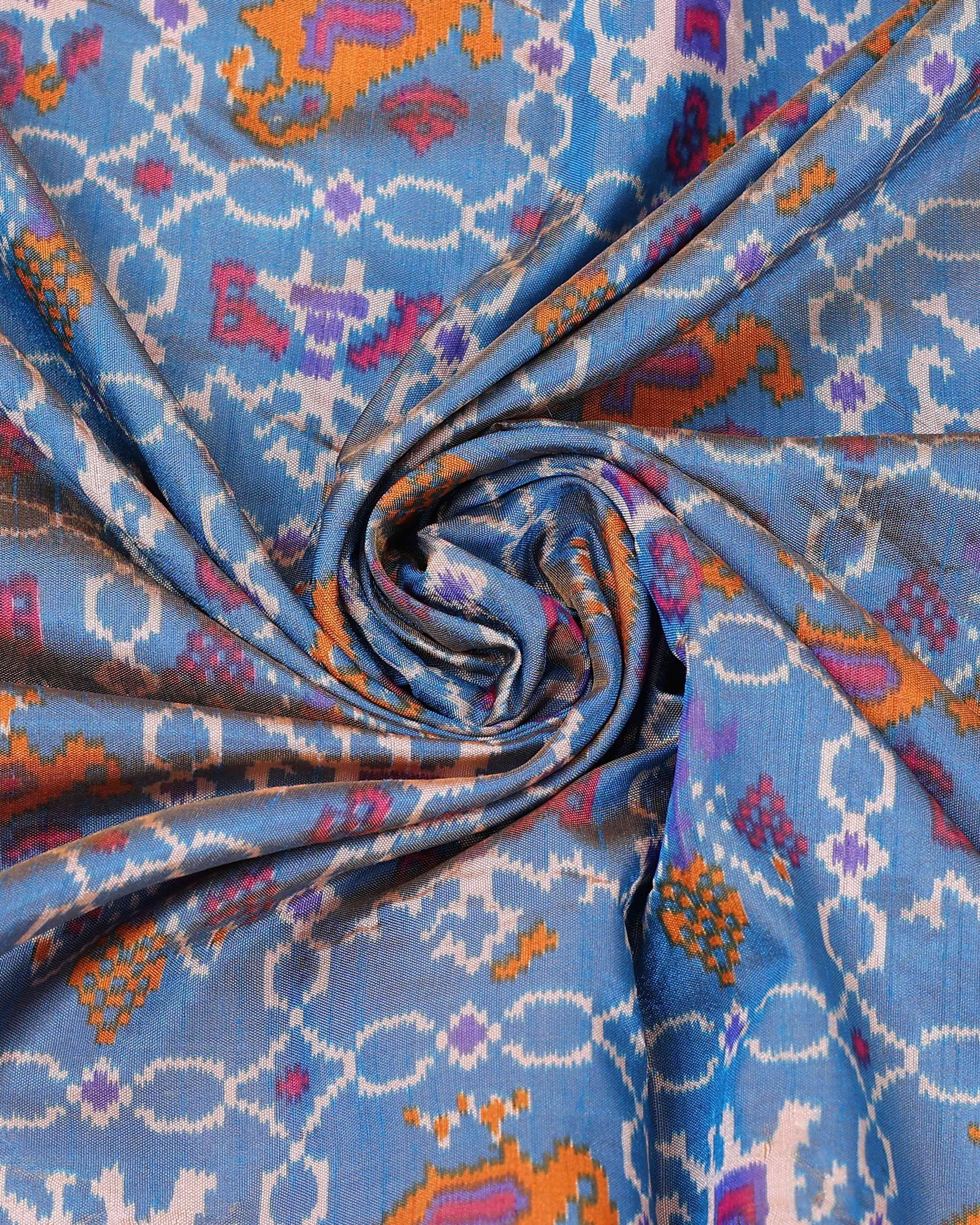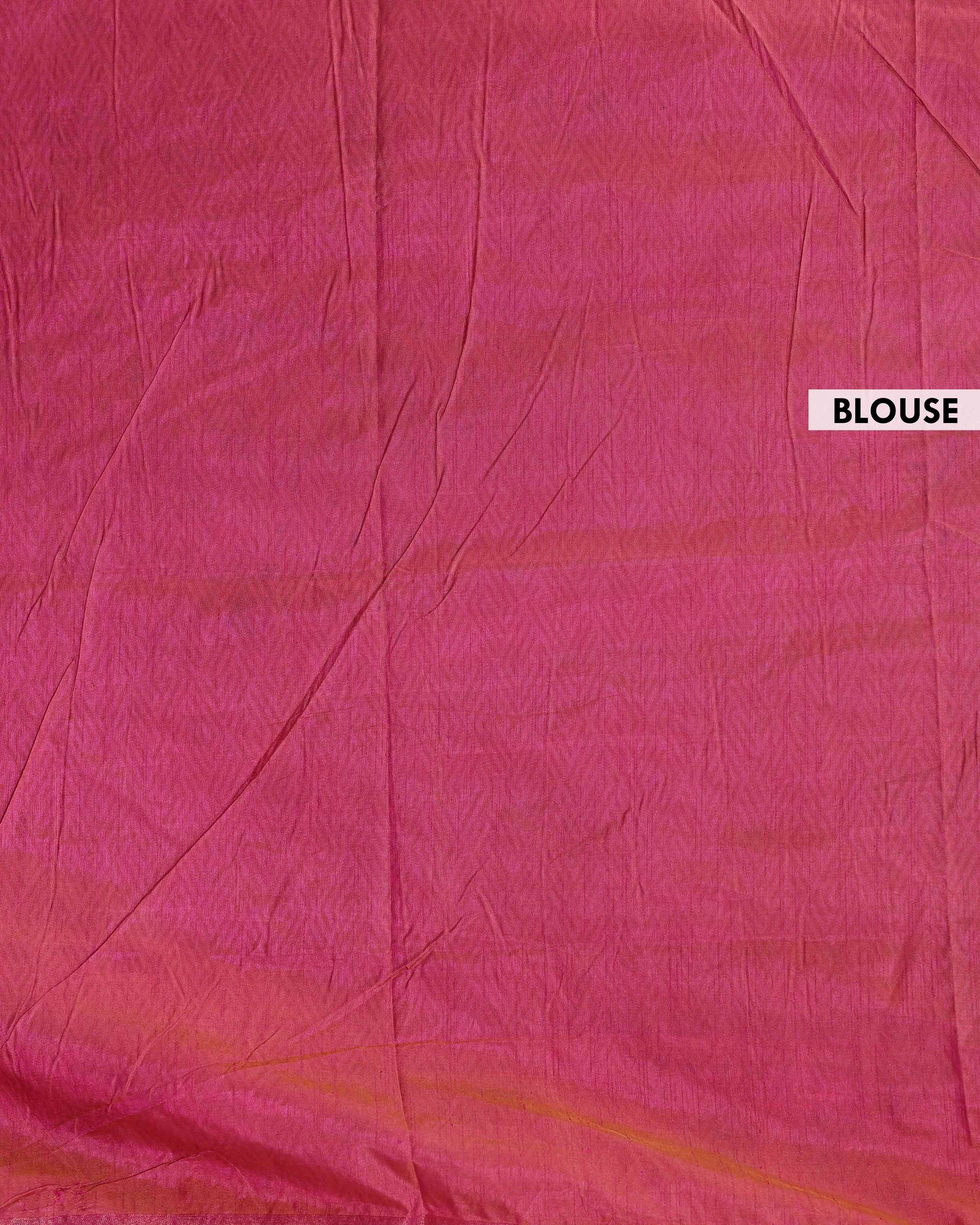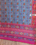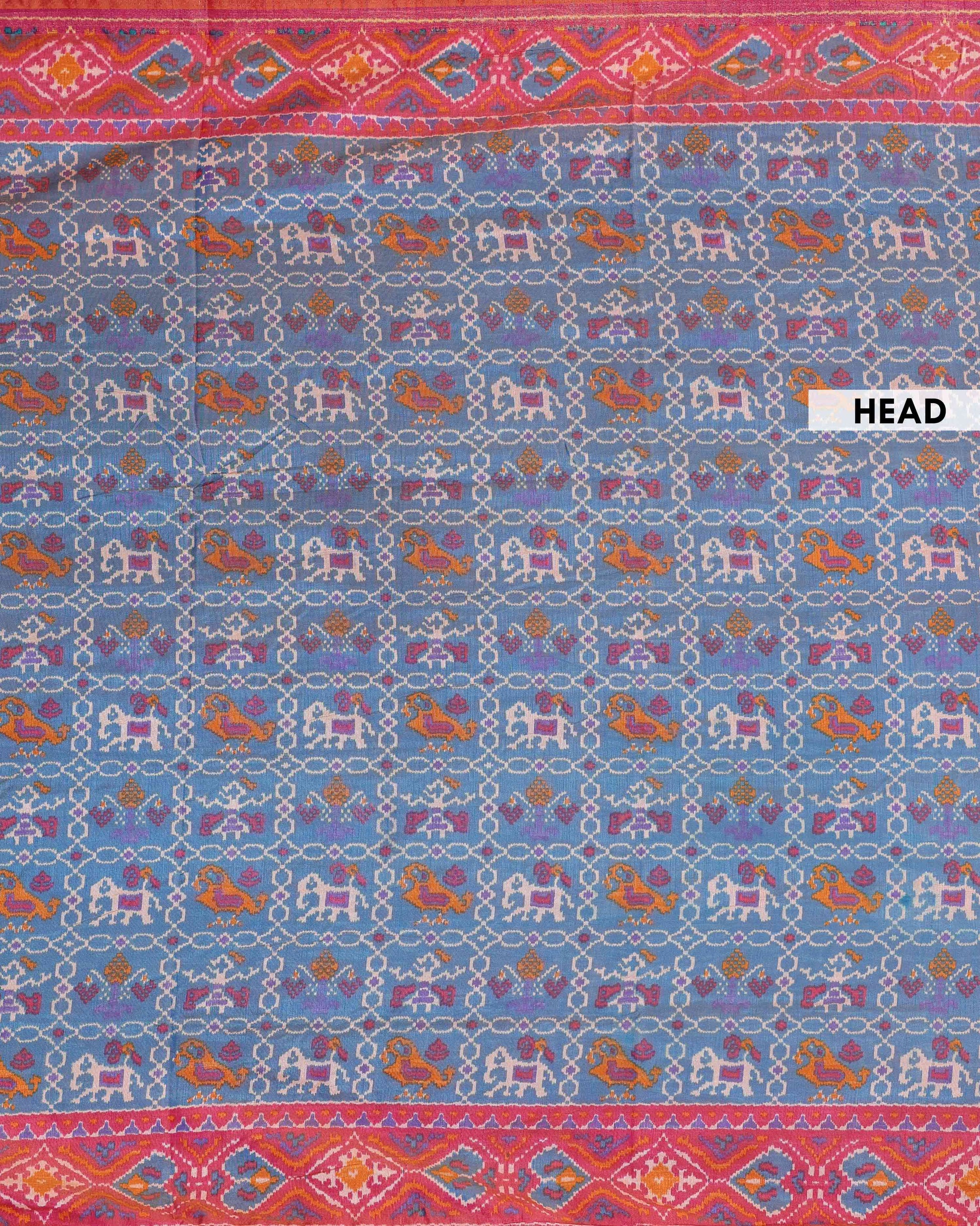 - Elevate your style with this handcrafted Patola Silk Saree, a vibrant blue body adorned with intricate patterns and a stunning pink border