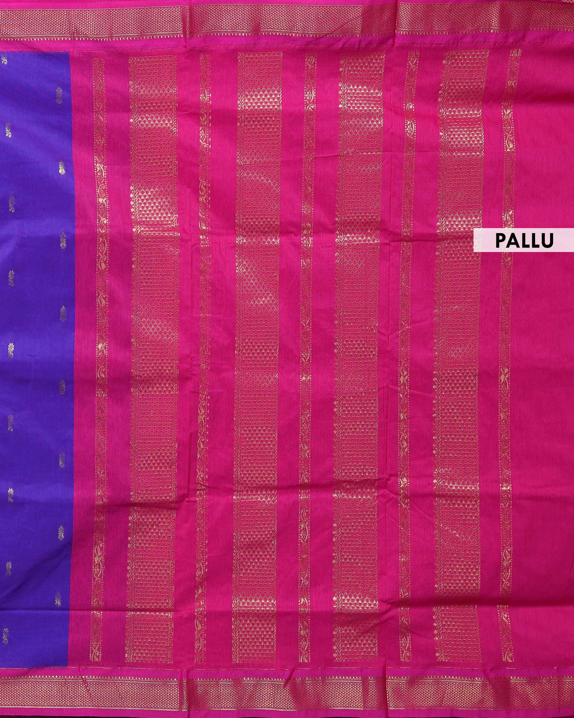 Handloom Kalyani Cotton Saree with Intricate Zari Border and Traditional Woven Motifs - Purple