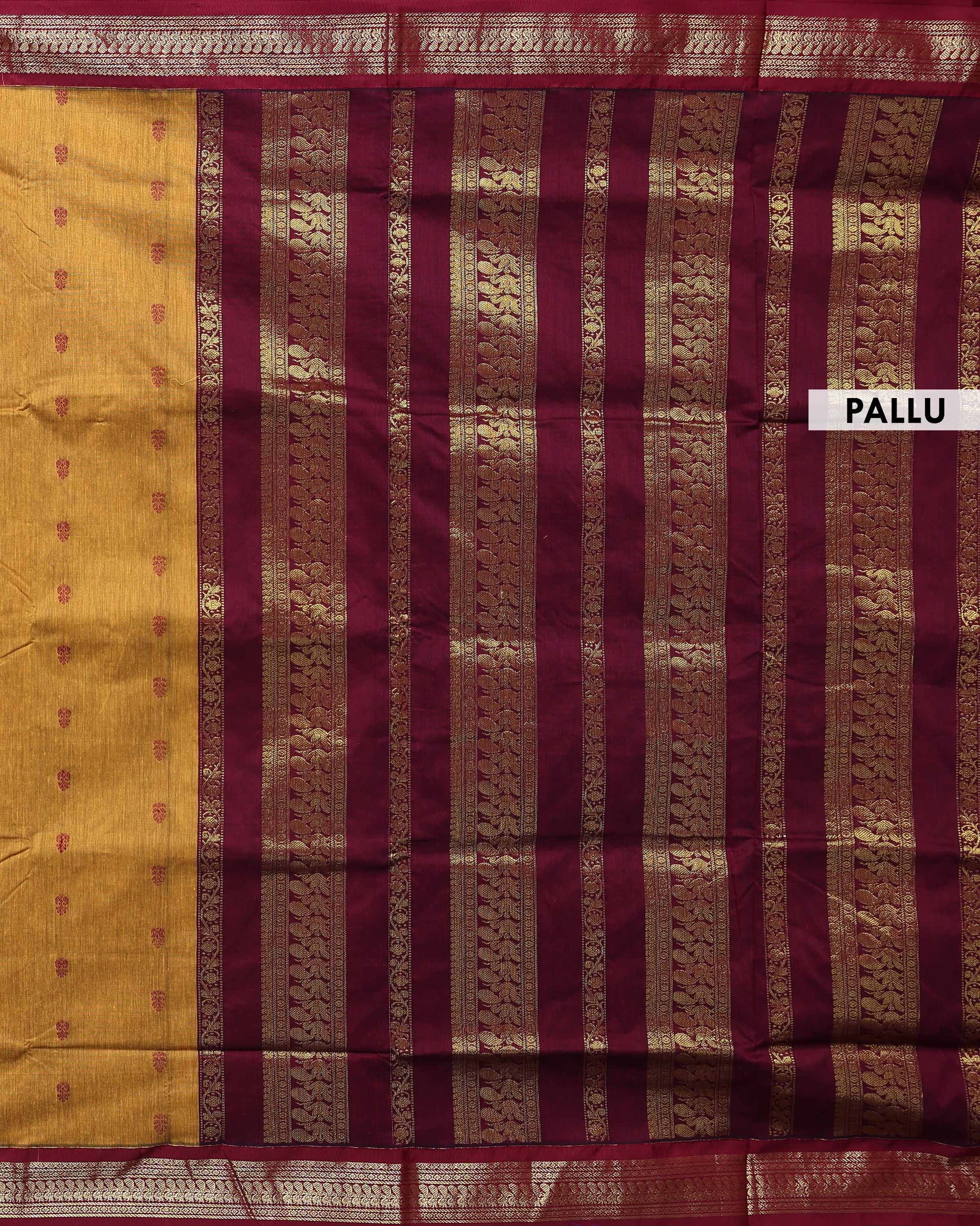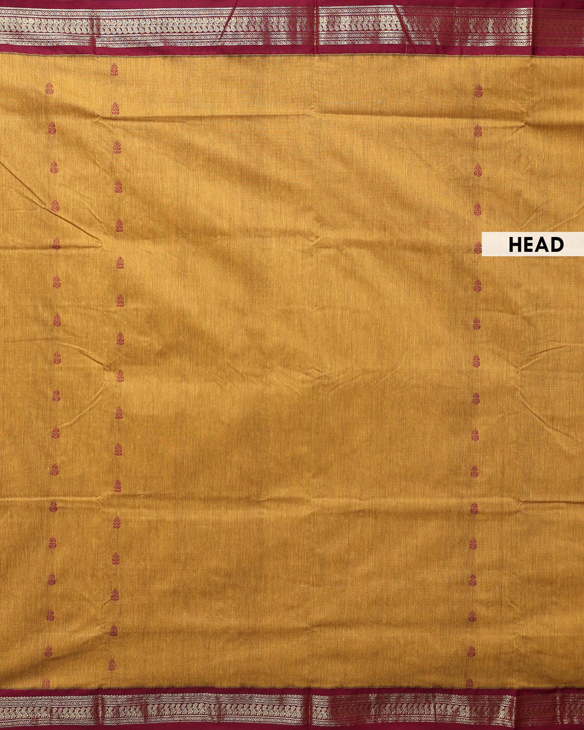 Handloom Kalyani Cotton Saree with Traditional Woven Zari Border and Delicate Butta Motifs - Mustard