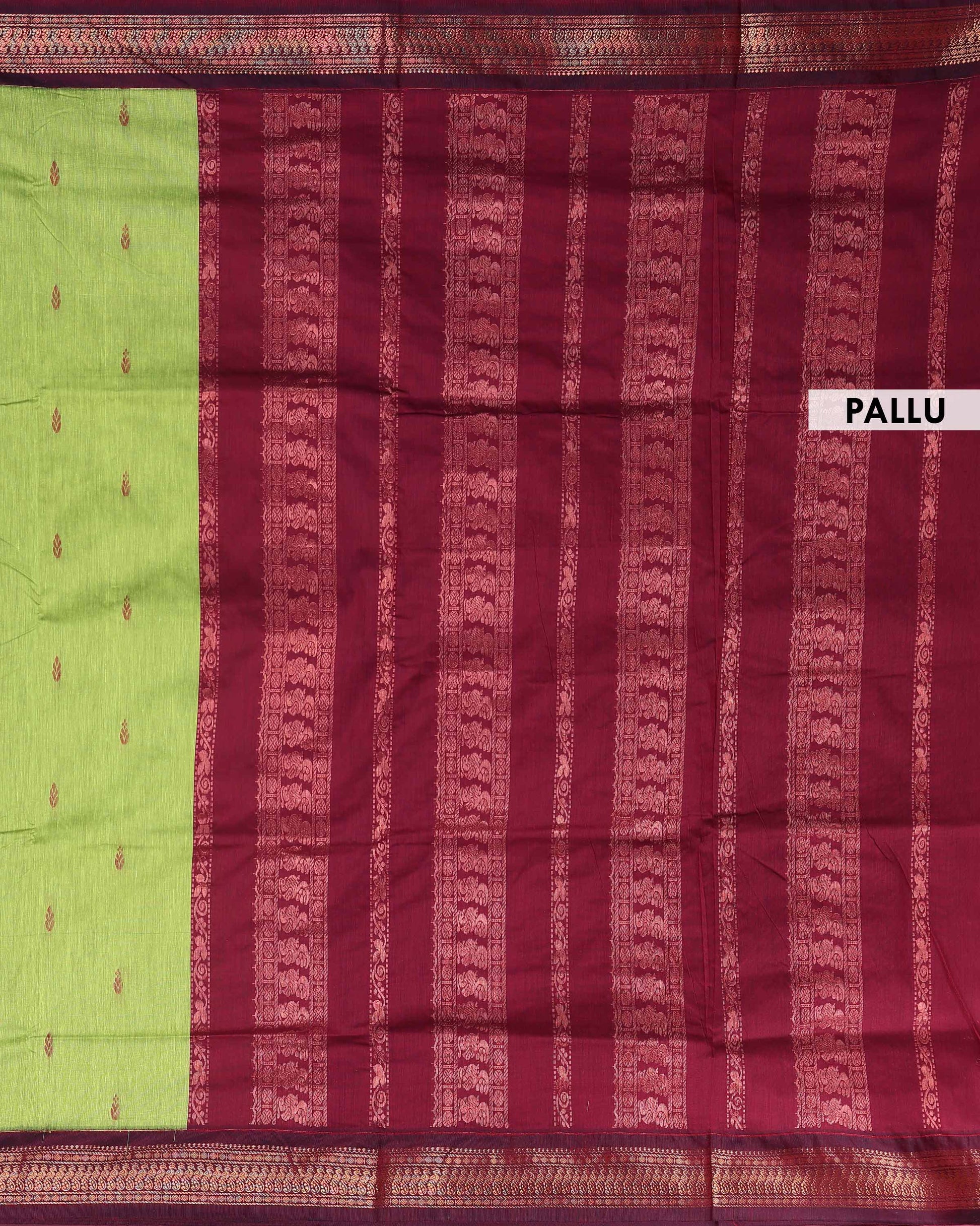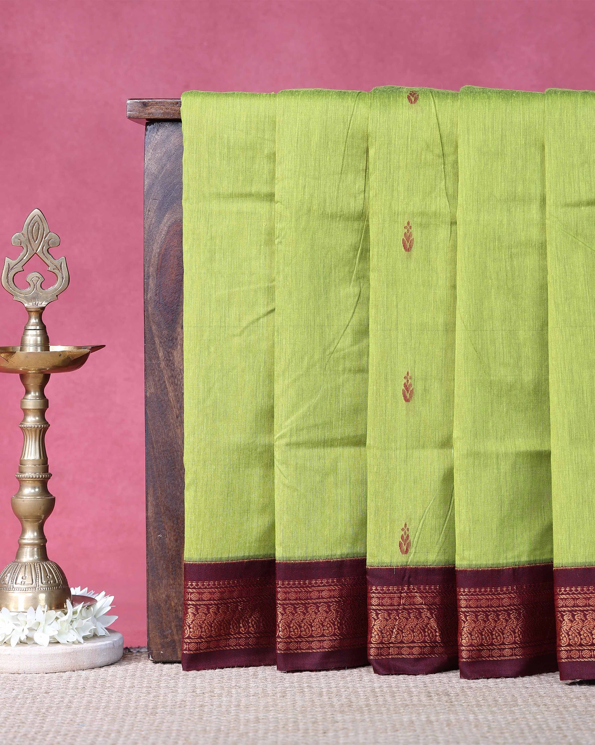 Handloom Kalyani Cotton Saree with Traditional Zari Border and Elegant Butta Motif Detailing - Light Green